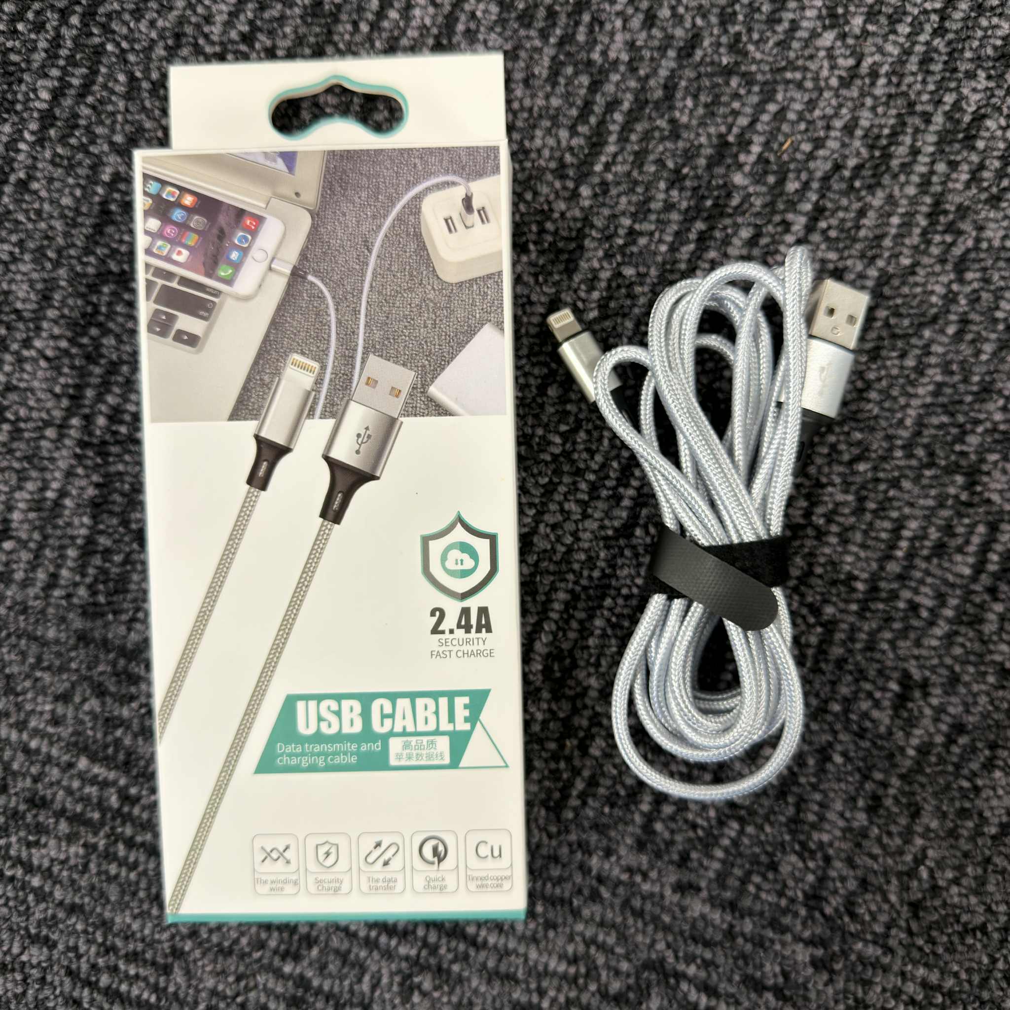 Laddkabel för iPhone och iPad. Kabeln har robust flätad nylontråd för extra hållbarhet och snabb laddning. Perfekt som extra kabel hemma, i bilen eller på kontoret.