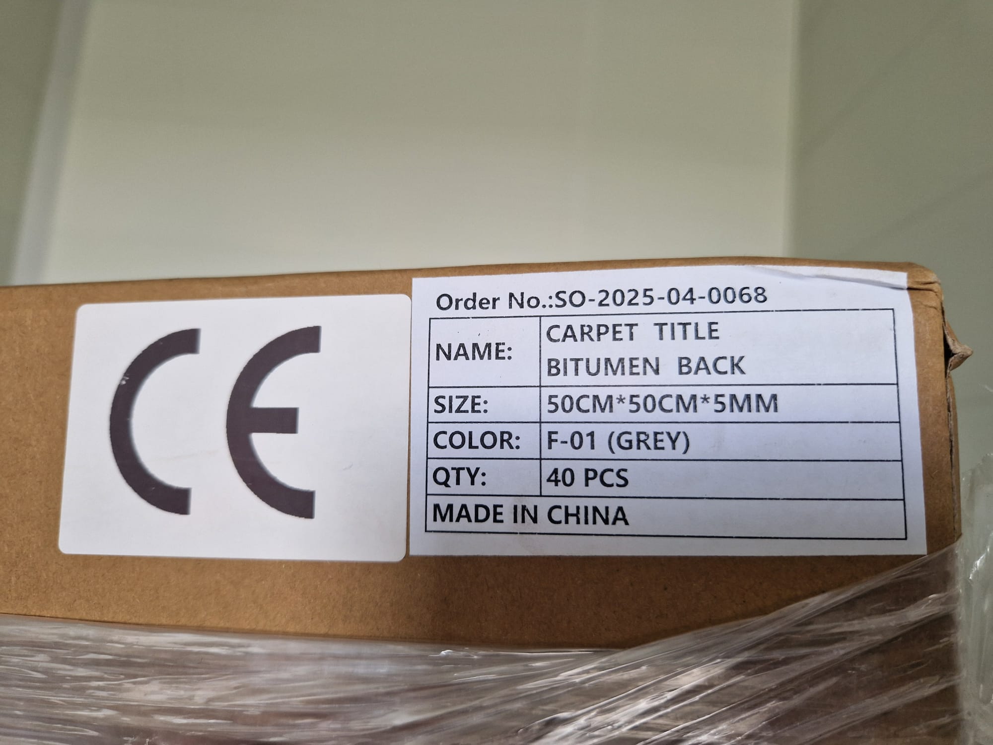 Antal plattor: 40 st per kartong (flera kartonger, totalt 80 m²)
