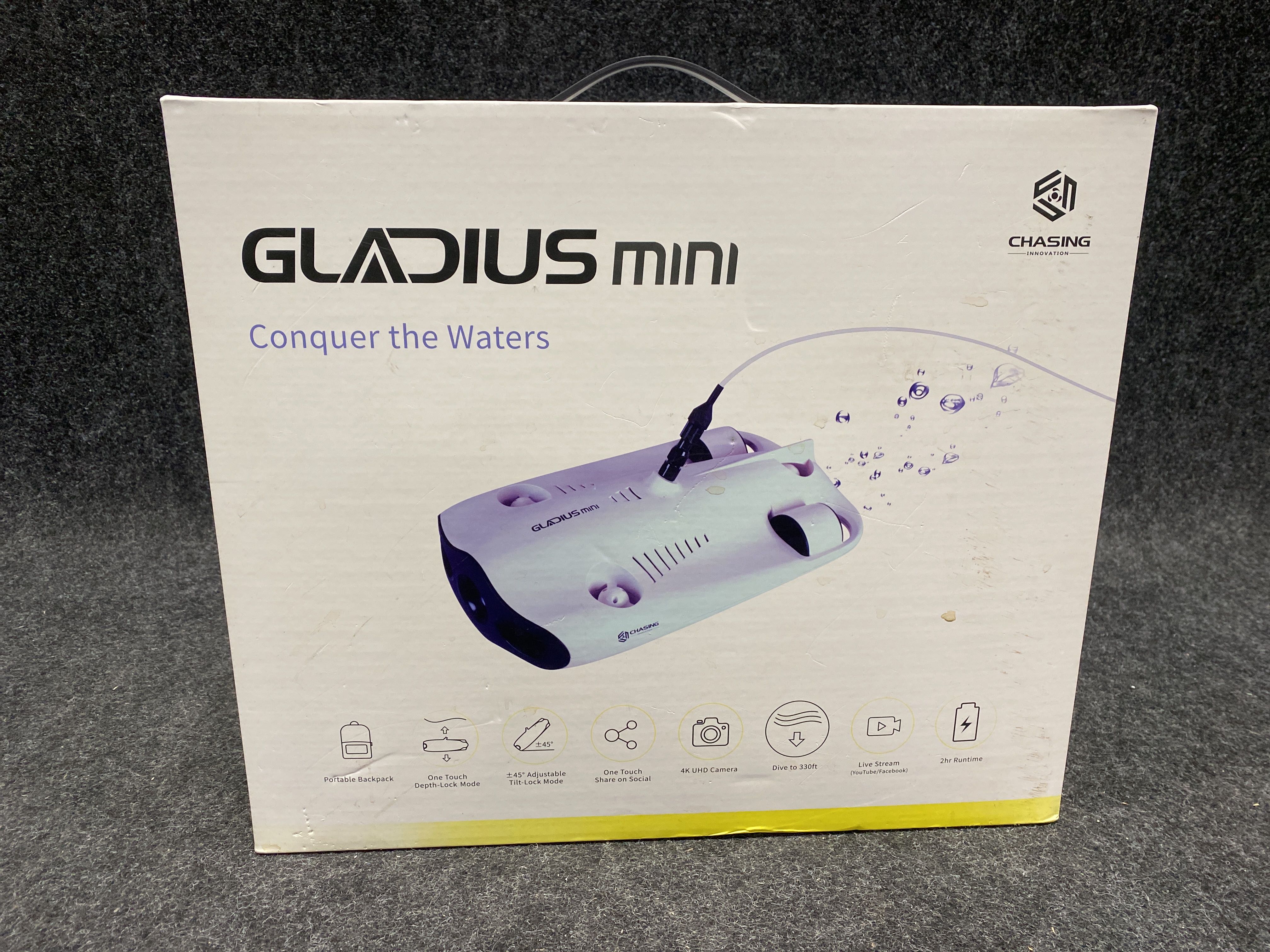 Auktionen innehåller bland annat: Undervattensdrönare/ROV Gladius mini S,