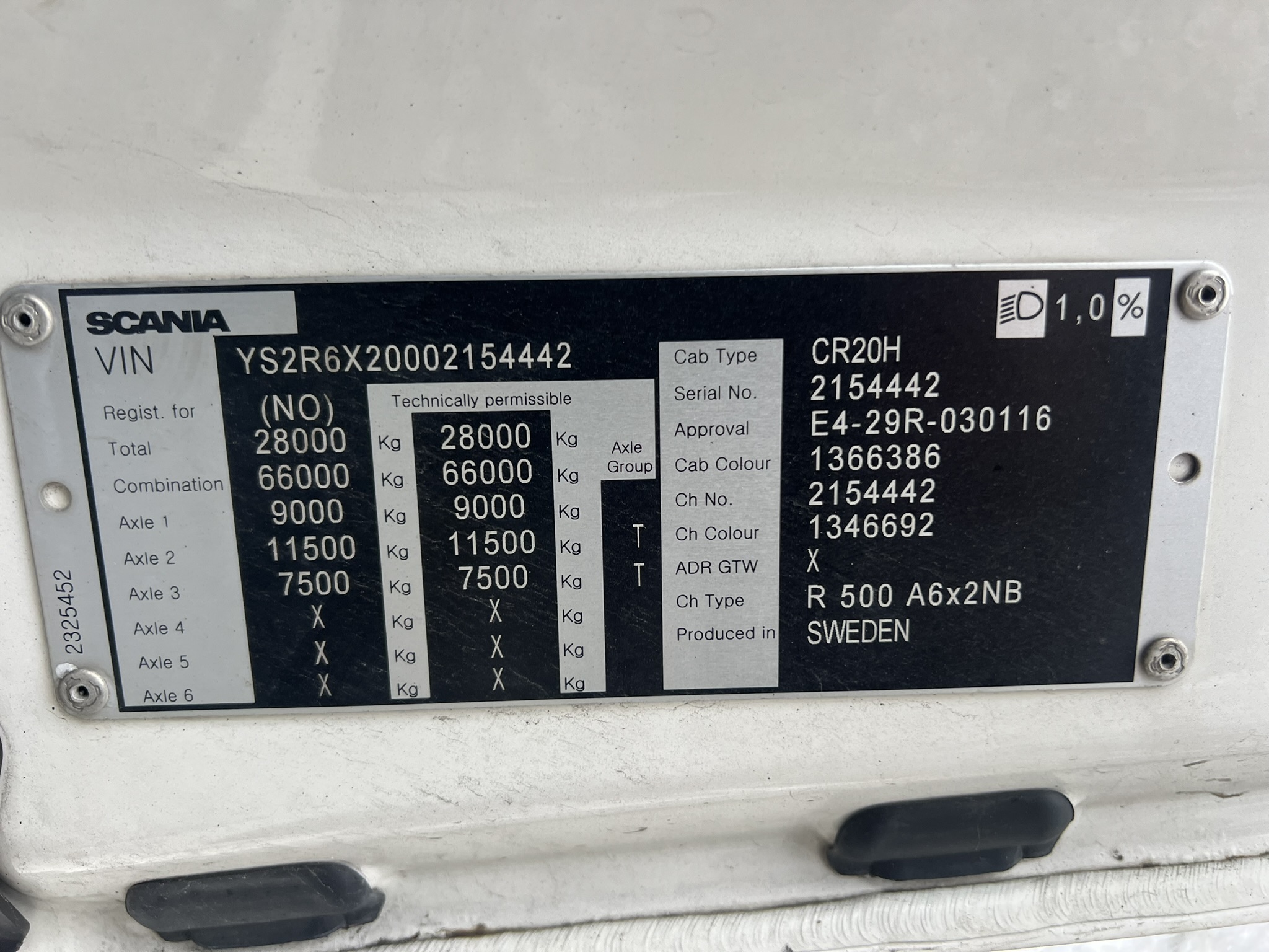 | Chassinummer/VIN | YS2R6X20002154442 |