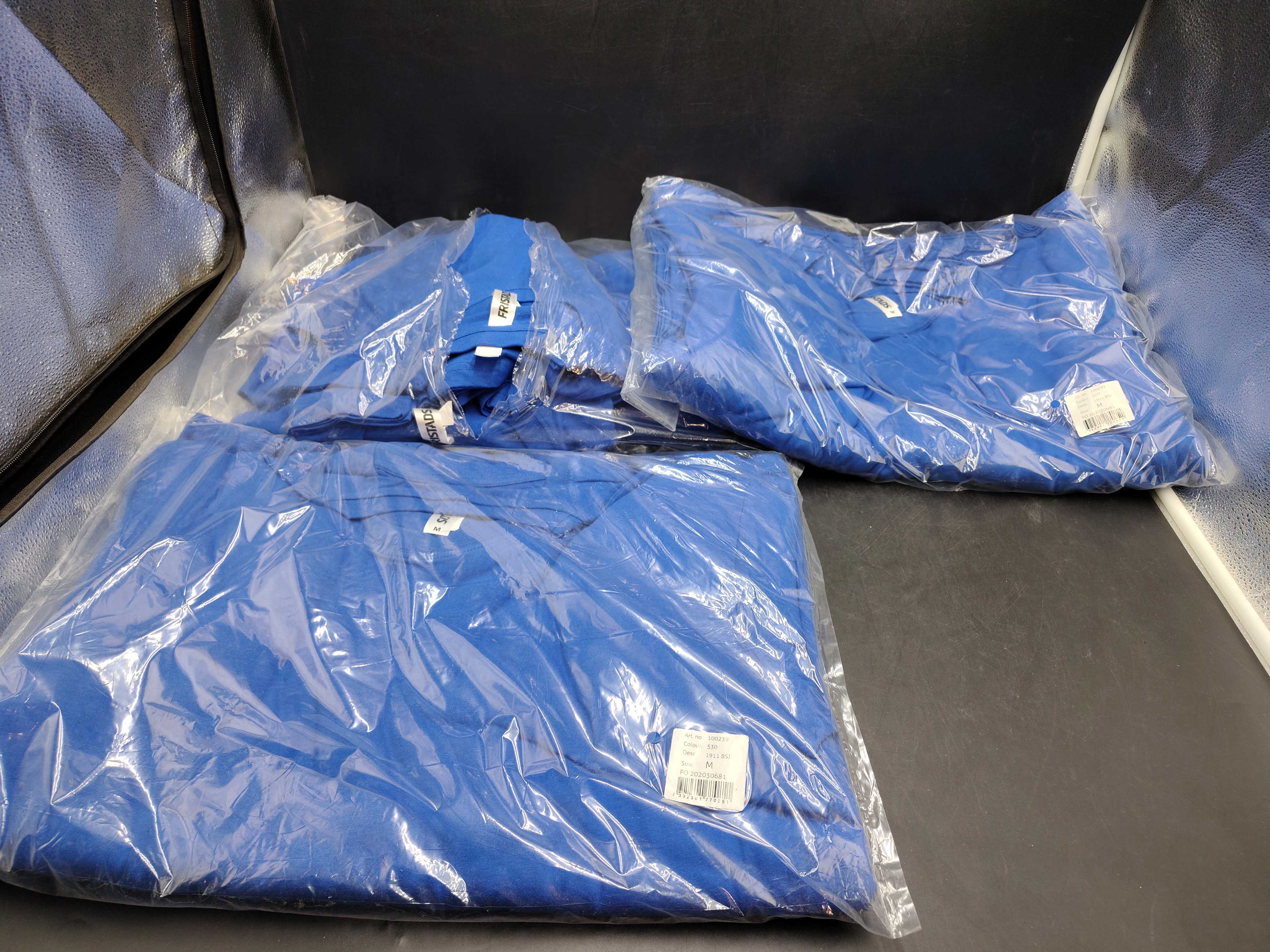 T-shirt, 30 st - Fristads, blå, stl M, utan sidsömmar, ribbstickad halskant