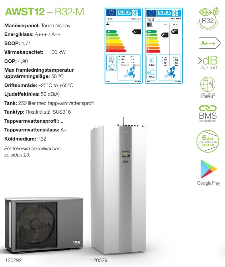 12kW luft/vatten värmepump från Energy Save med varmvattentank, rostfri bufferttank 15m spiral K162