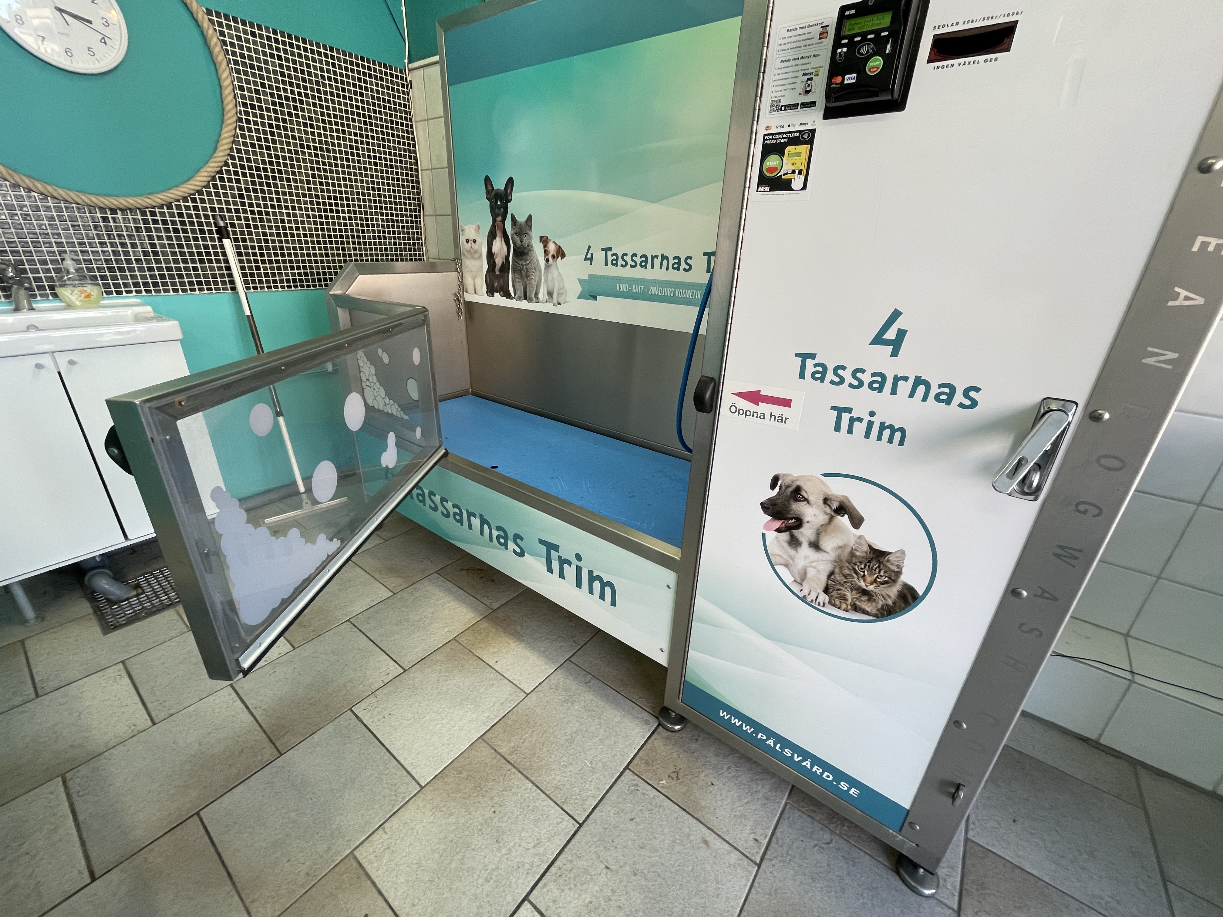 - iClean Dog Wash Classic / Hundtvätt, man kan betala med kort eller sedlar.