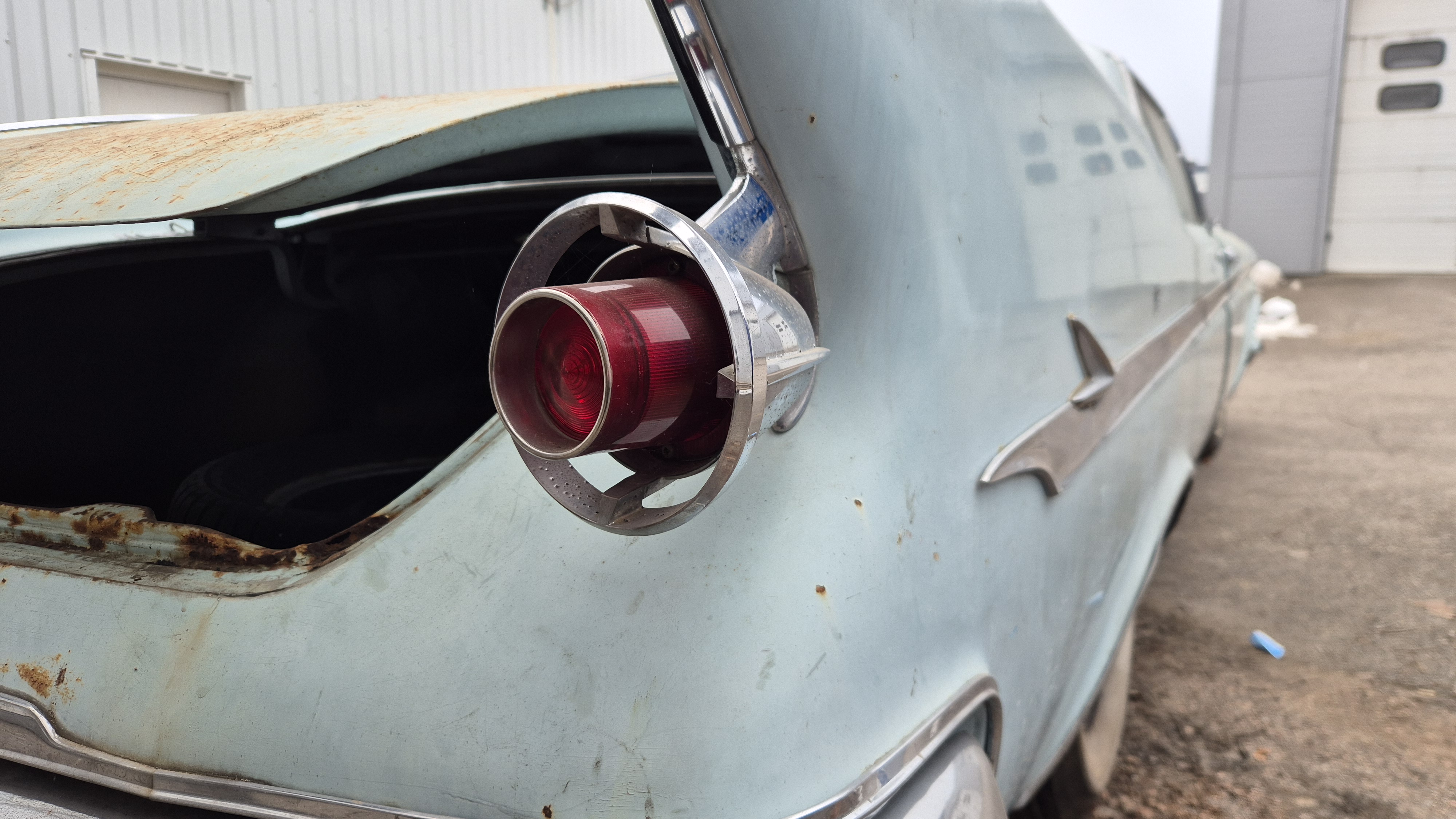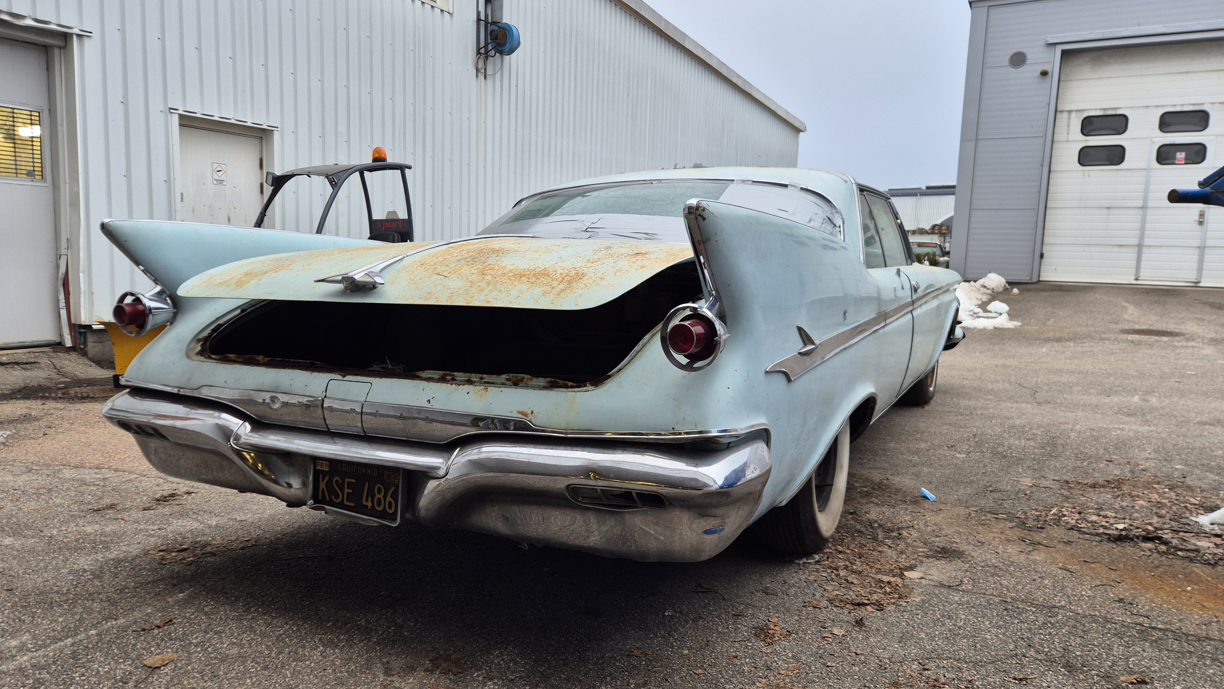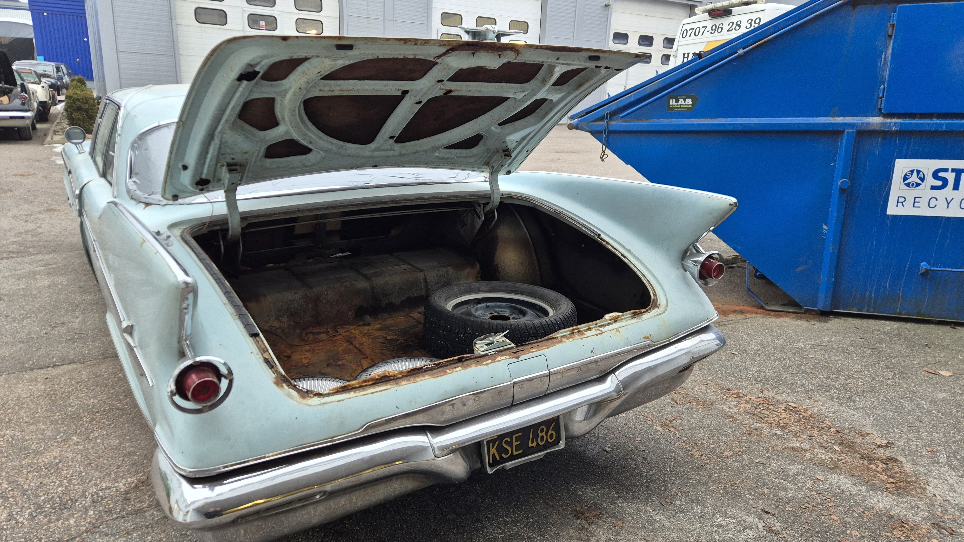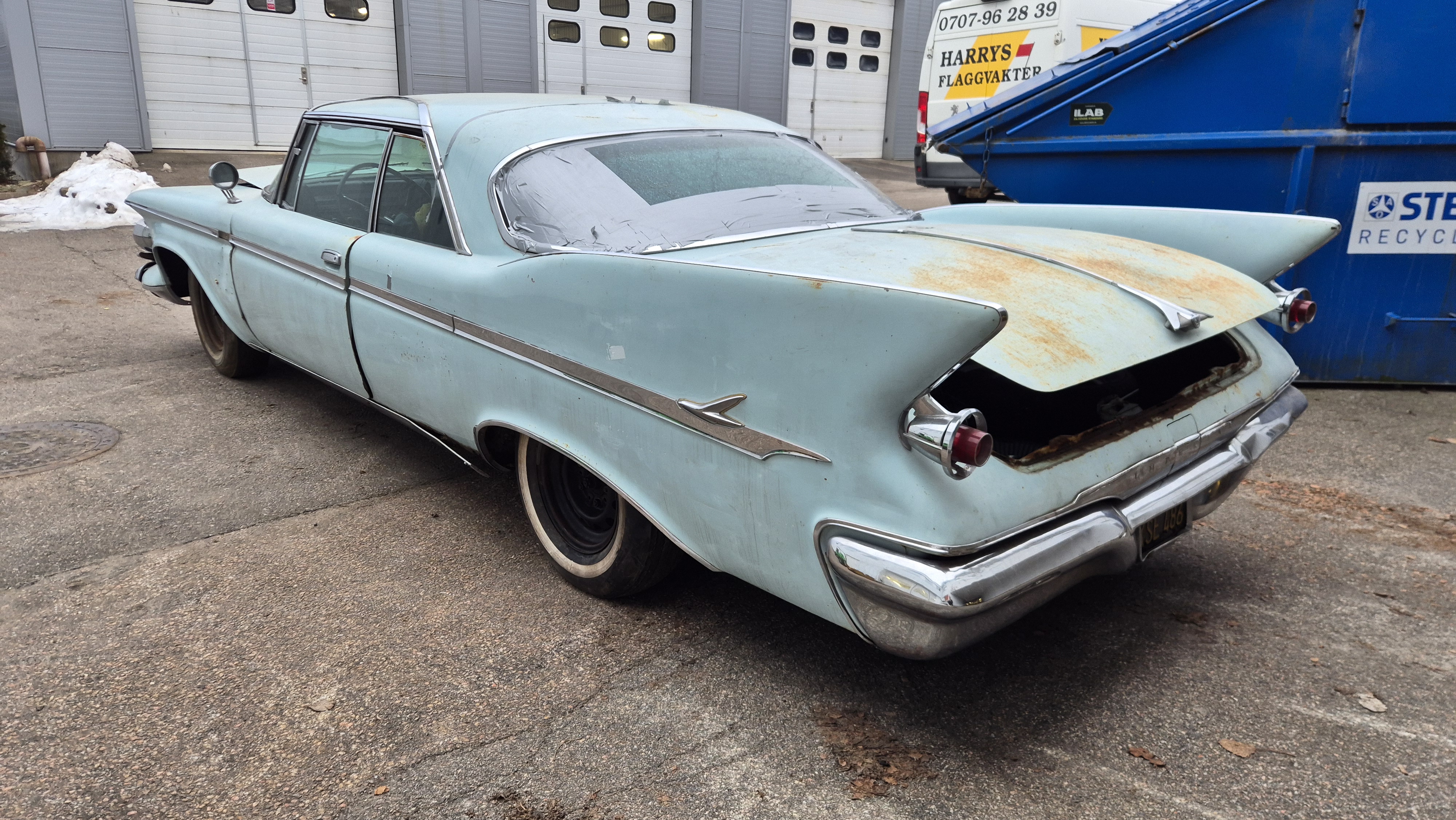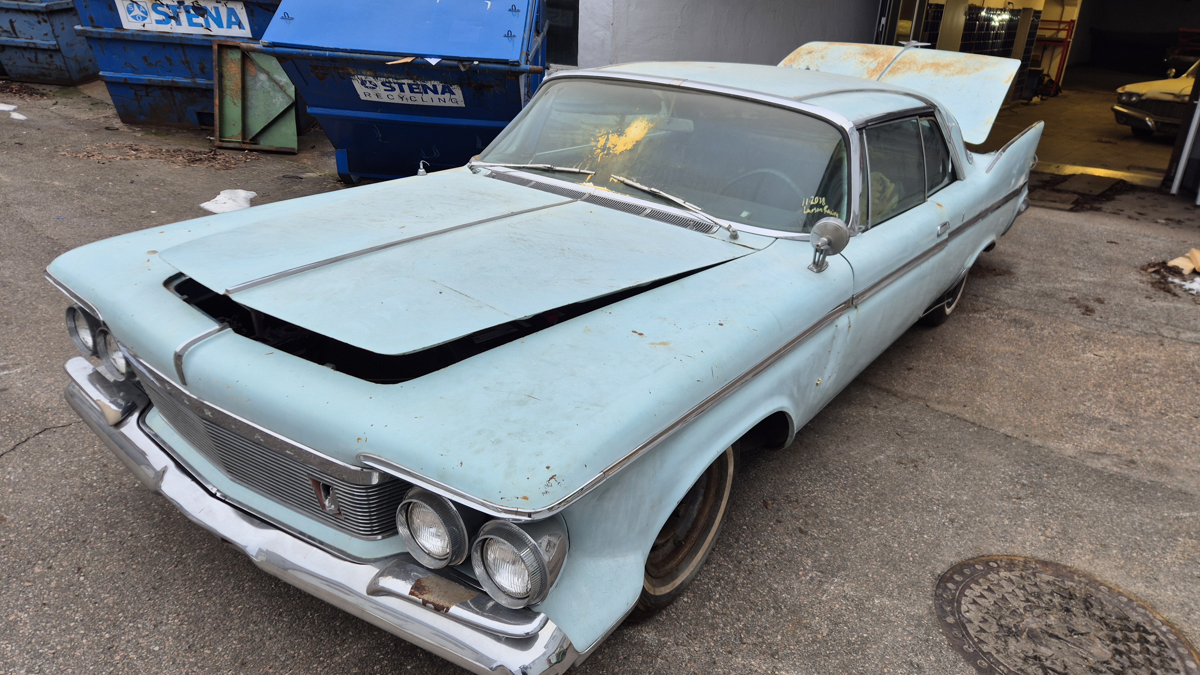 Bilen importerades från San Bernandino i Californinen till Sverige 2015 med ambition att renoveras men har blivit stående i förråd.