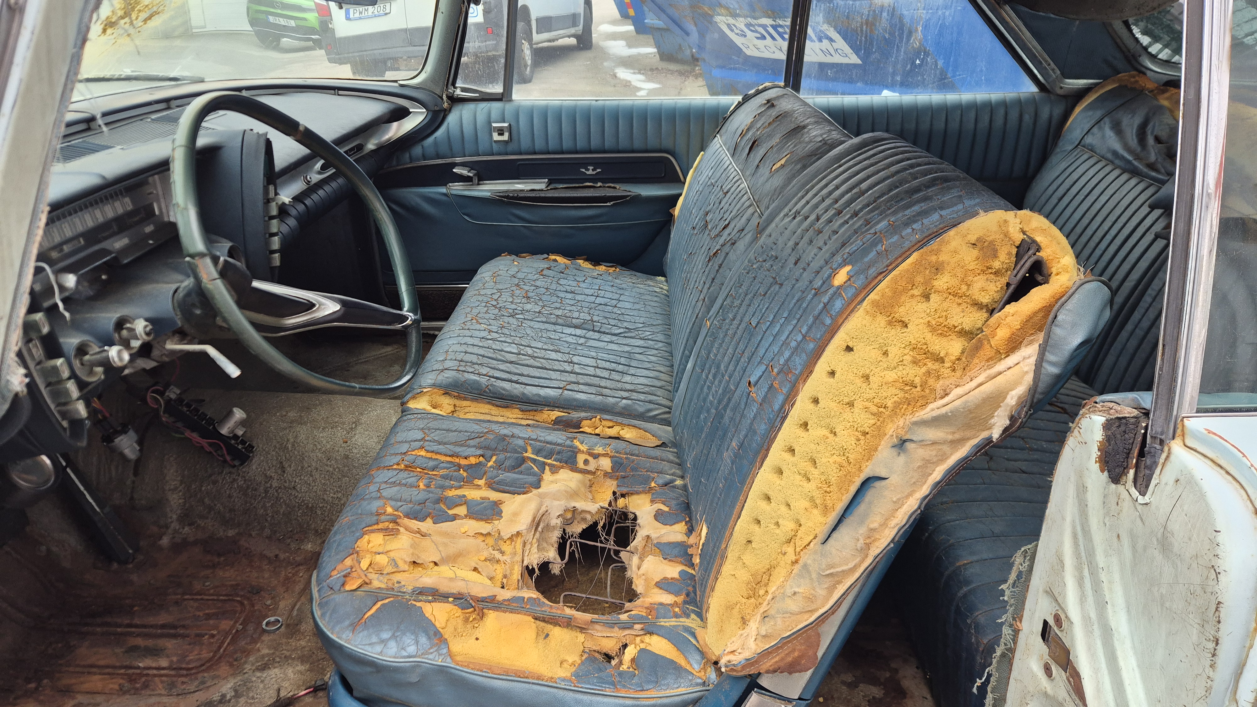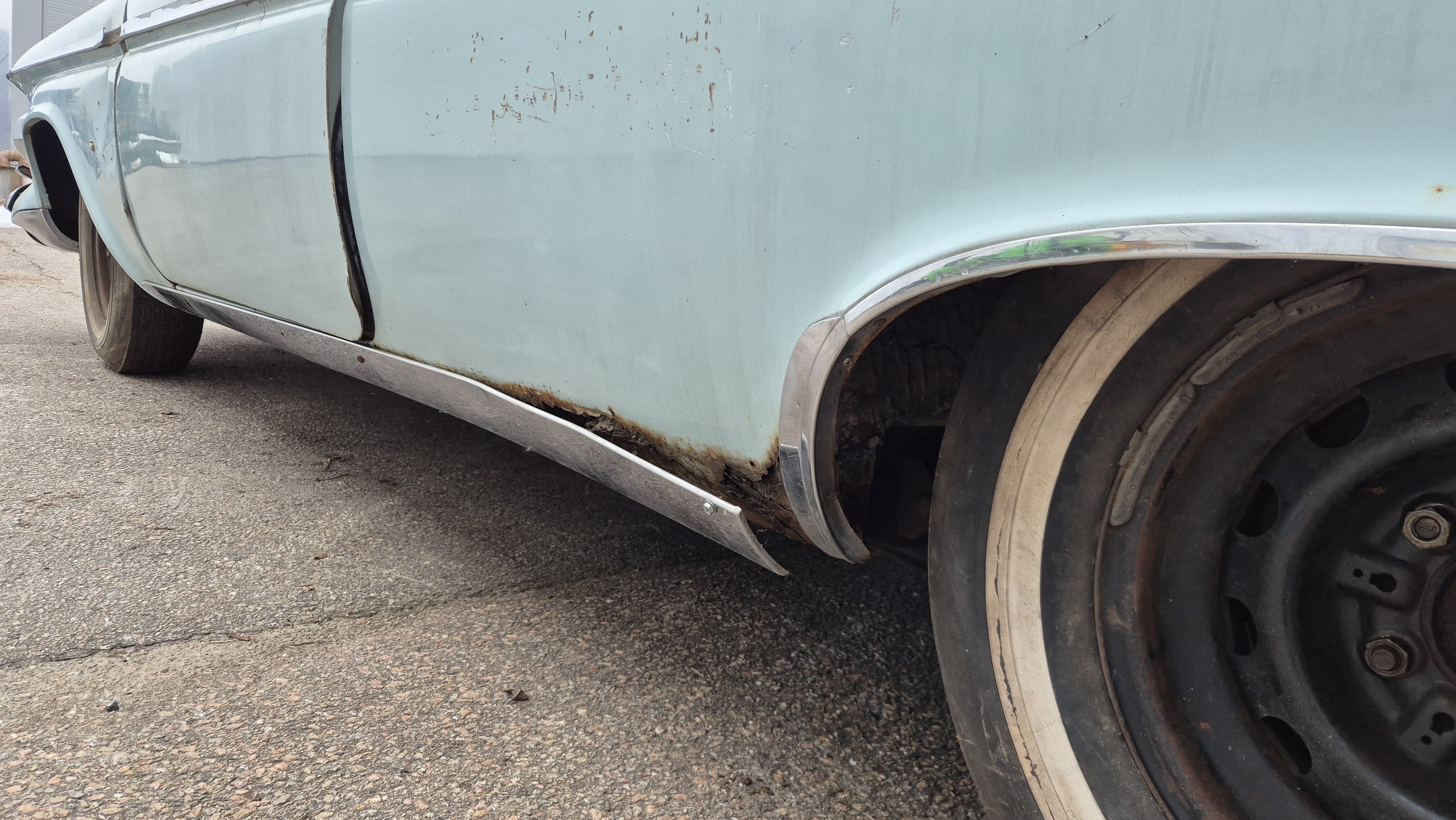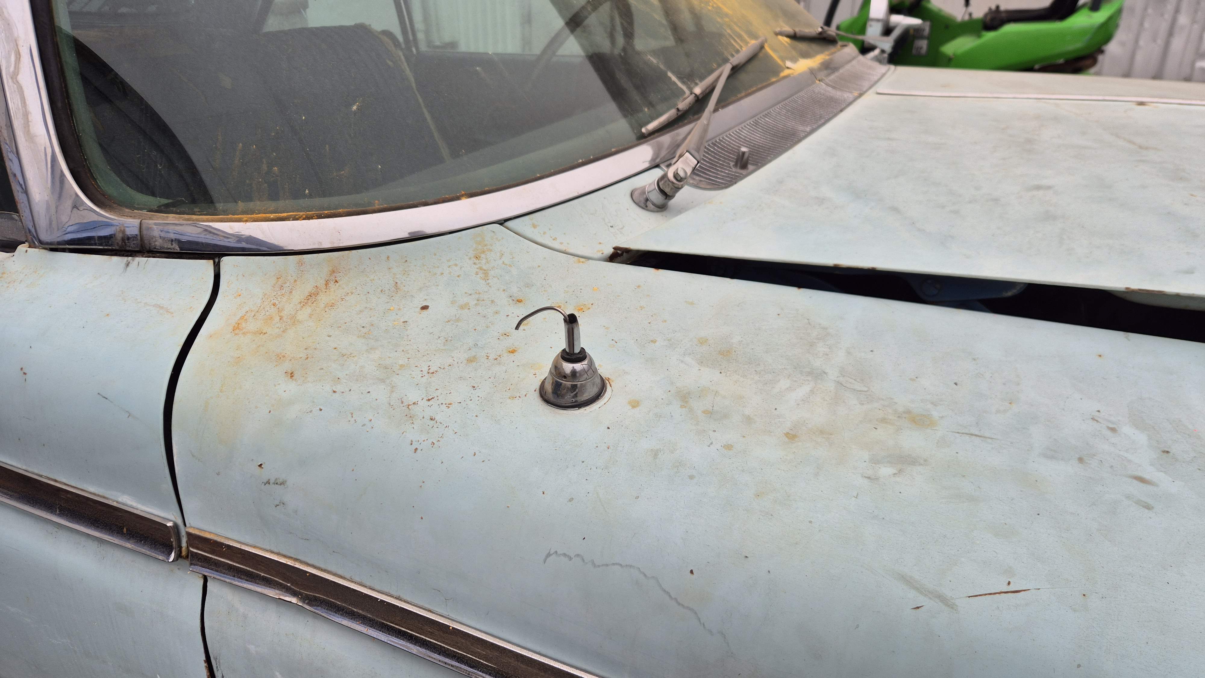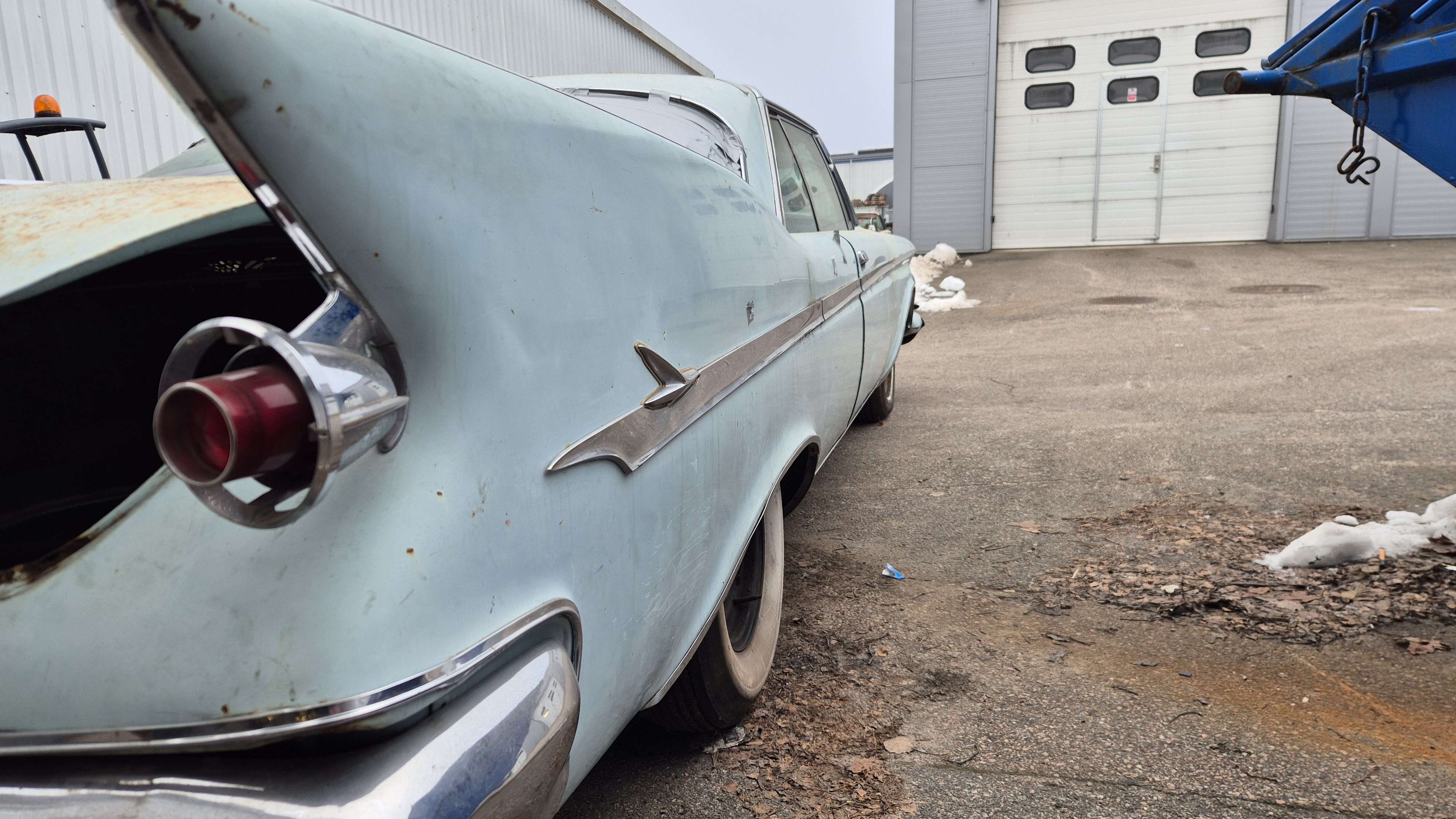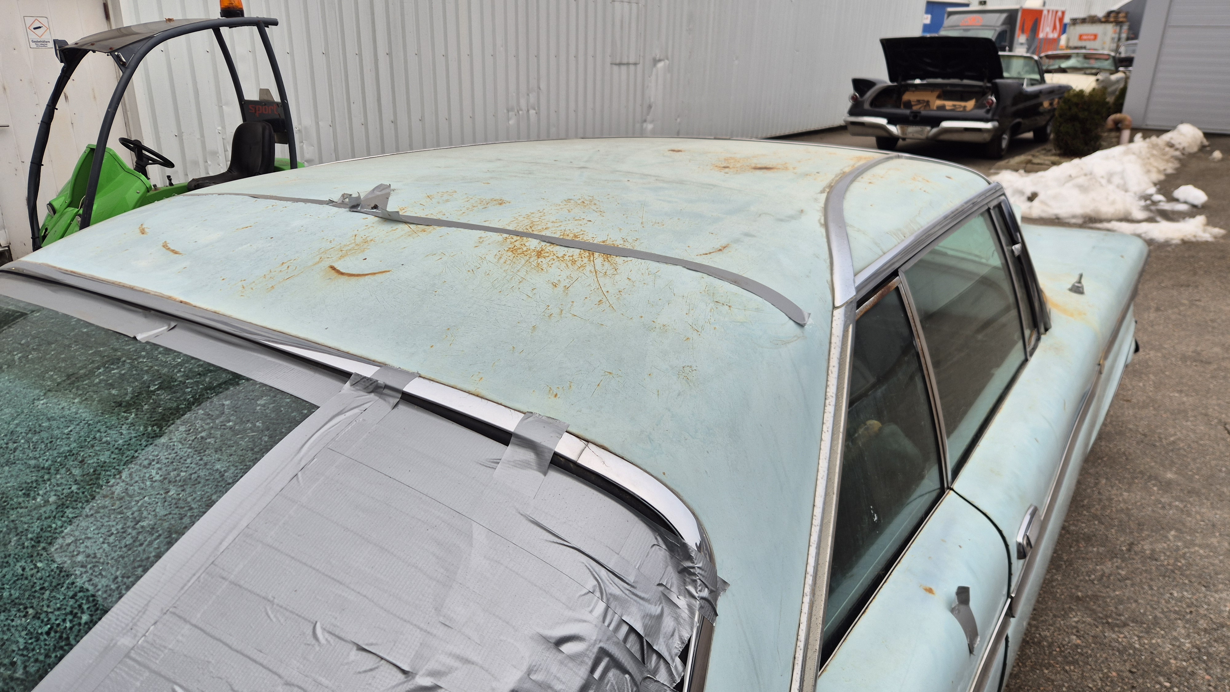 Bilen importerades från San Bernandino i Californinen till Sverige 2015 med ambition att renoveras men har blivit stående i förråd.