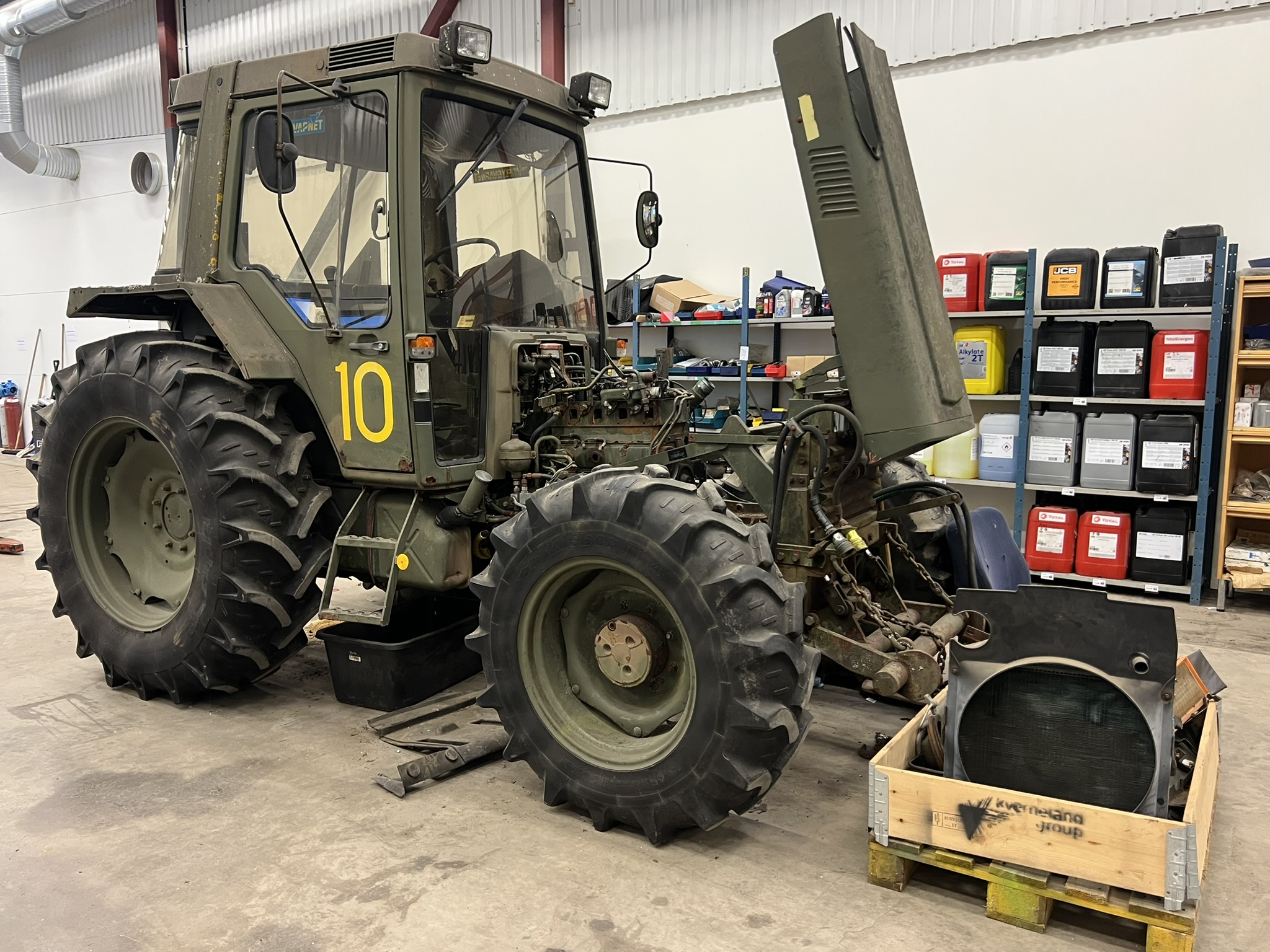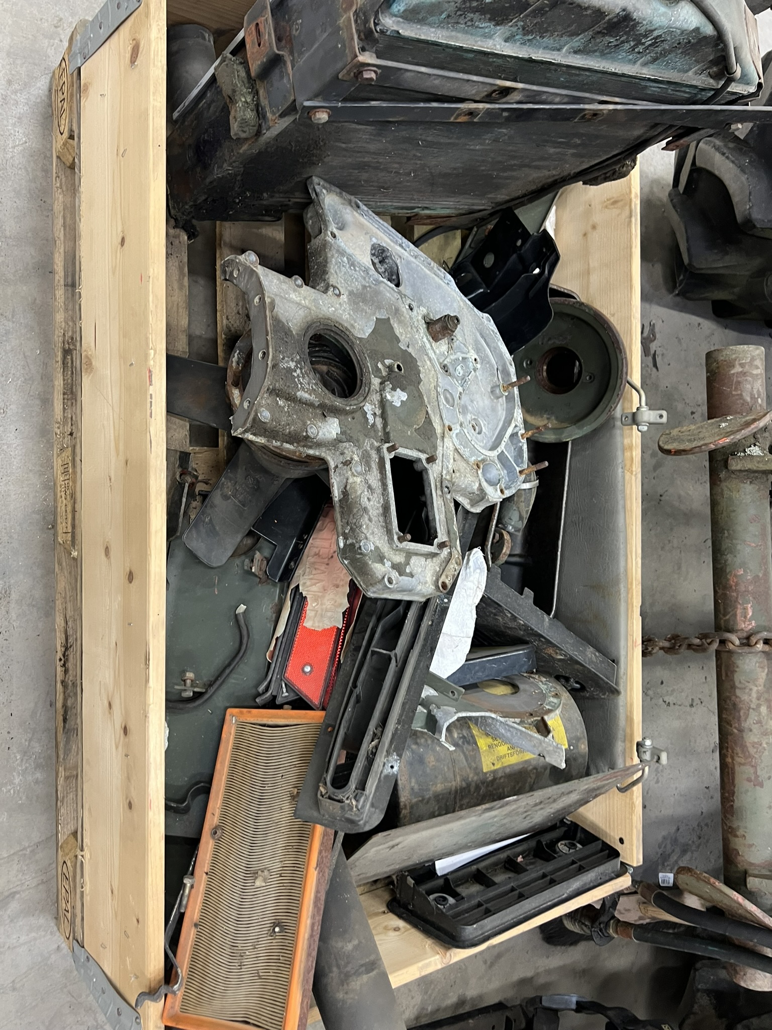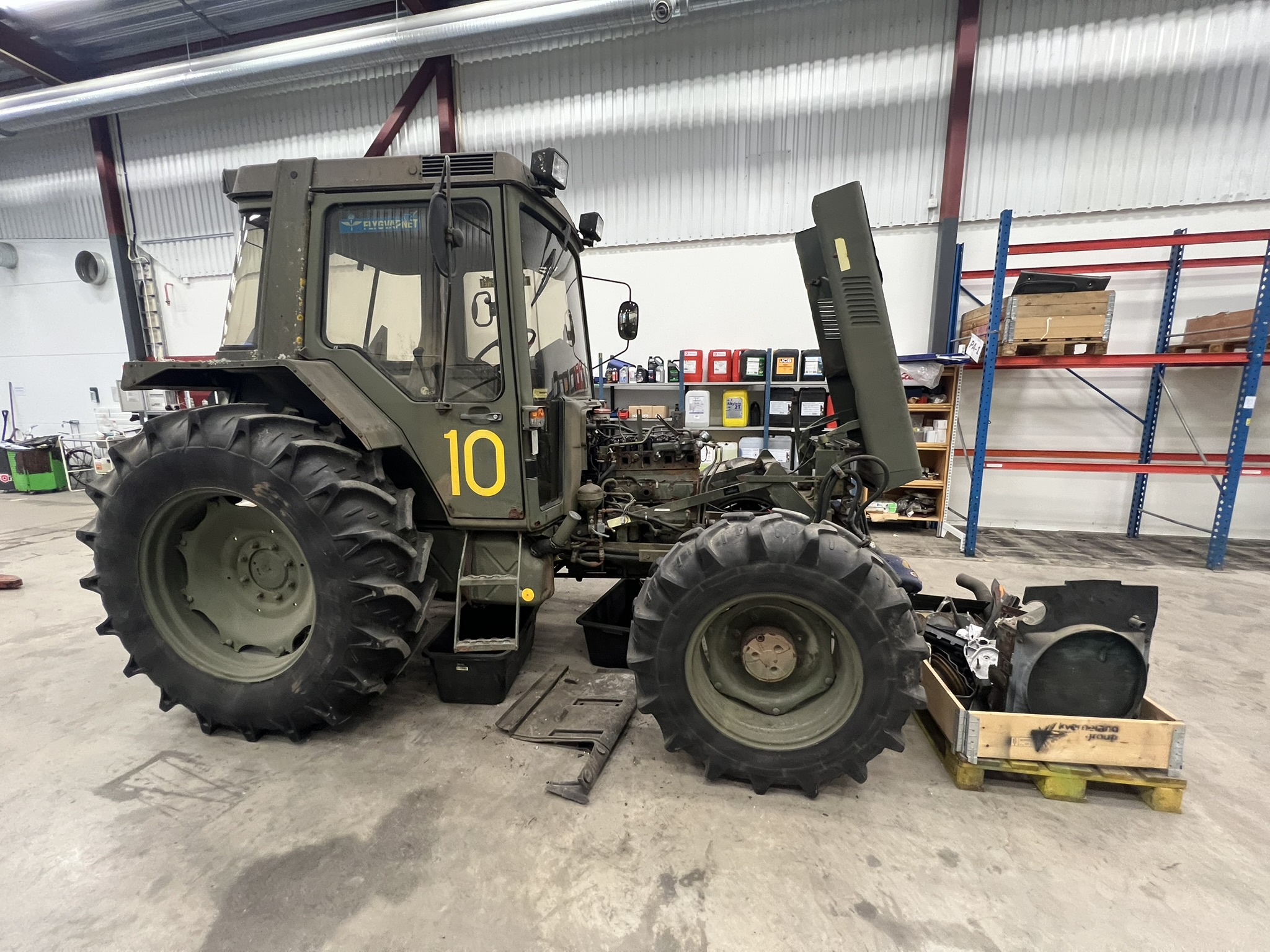 Bland objekten finns startbatterier och MC-batterier, hydraulik- och traktordelar, verktyg och verktygsskåp med innehåll, kompressorer, svetsar, domkrafter, lyftutrustning, pallbockar, arbetsbelysning, elverk, motorvärmare, lagerhyllor samt diverse maskin- och fordonsrelaterade komponenter. Även kontors- och övriga inventarier ingår.