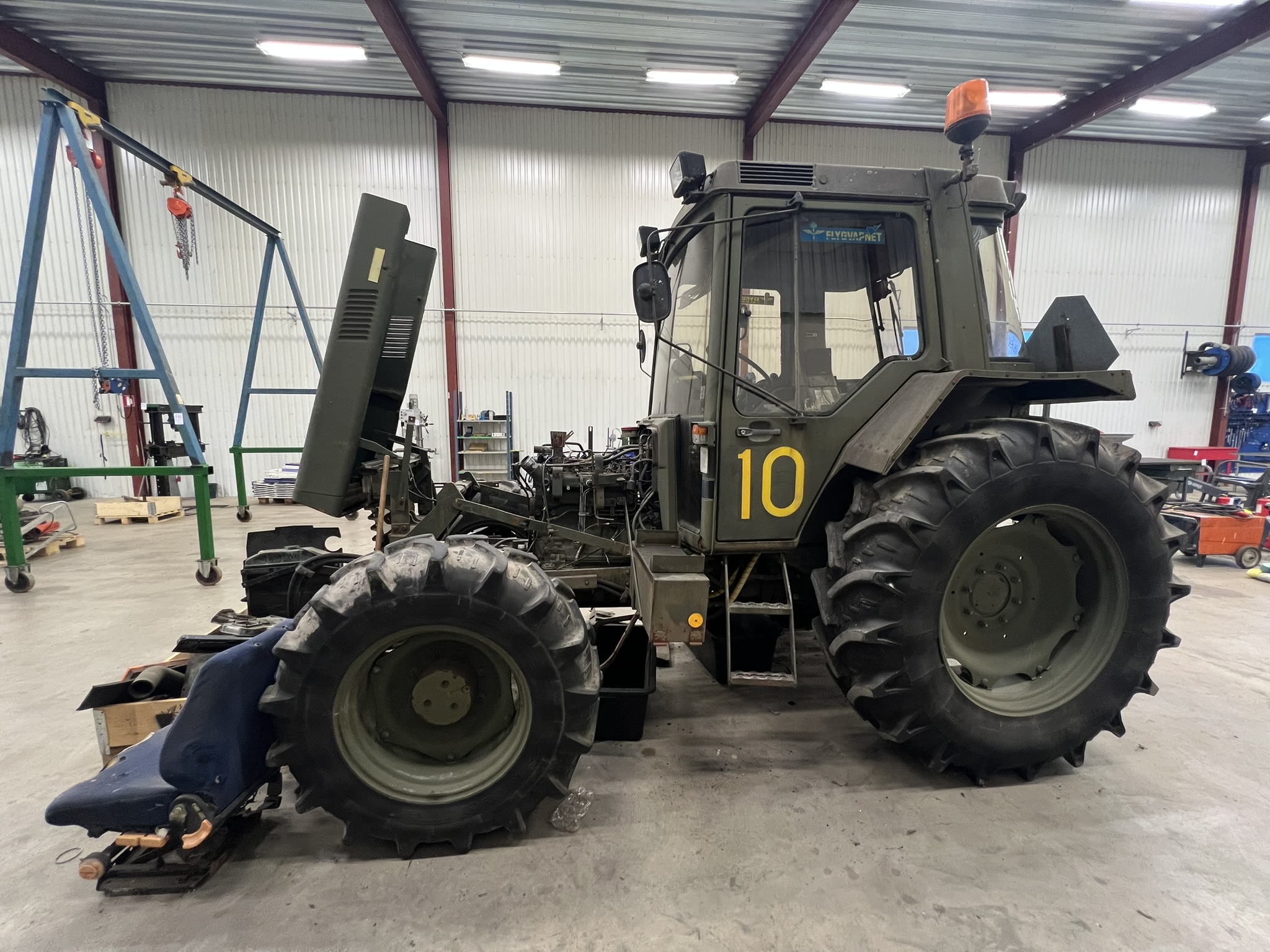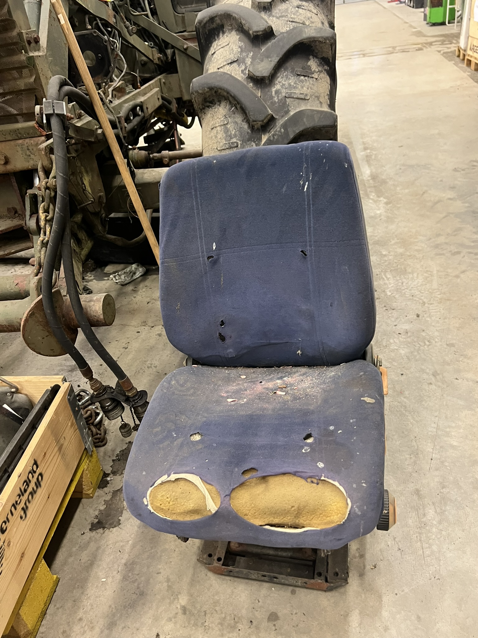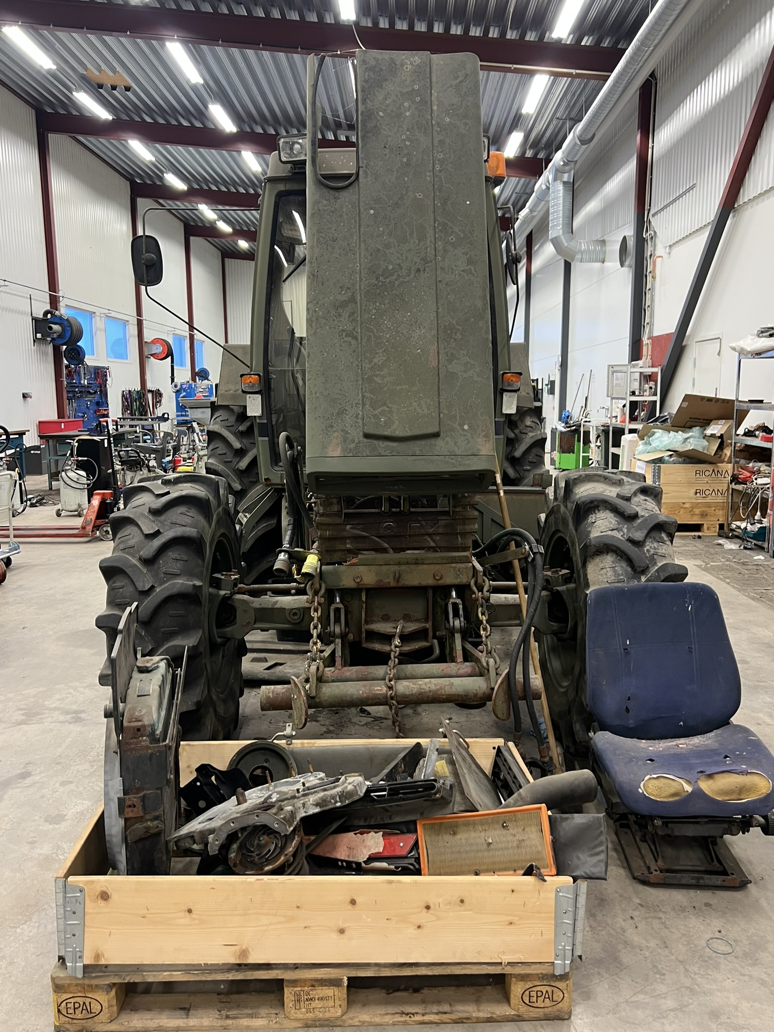 Bland objekten finns startbatterier och MC-batterier, hydraulik- och traktordelar, verktyg och verktygsskåp med innehåll, kompressorer, svetsar, domkrafter, lyftutrustning, pallbockar, arbetsbelysning, elverk, motorvärmare, lagerhyllor samt diverse maskin- och fordonsrelaterade komponenter. Även kontors- och övriga inventarier ingår.