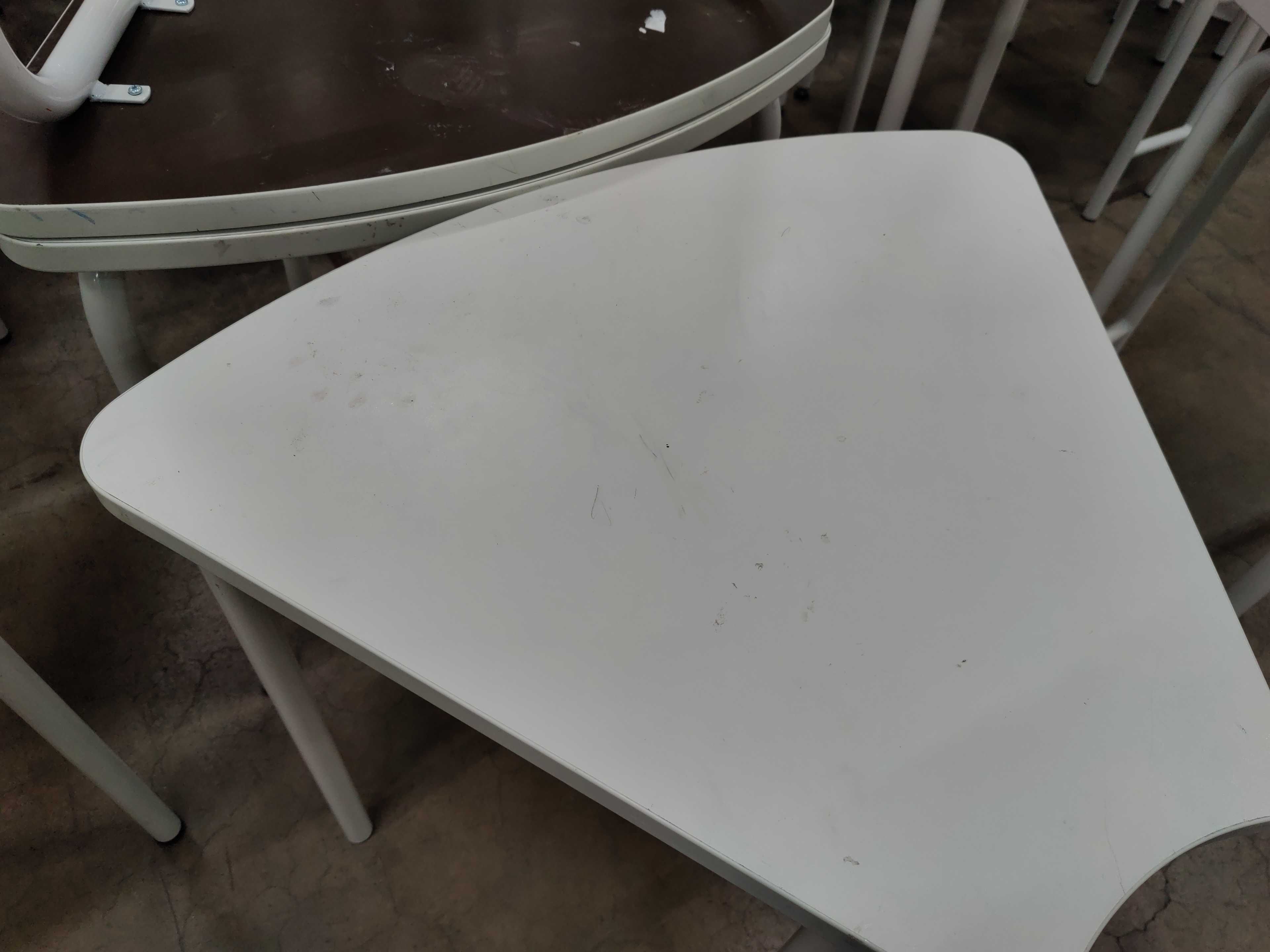 Borden har tidigare nyttjats i skolverksamhet och skav/repor/inristningar/färg från pennor kan förekomma i mindre och större utsträckning. Skador från välta bord kan också förekomma.