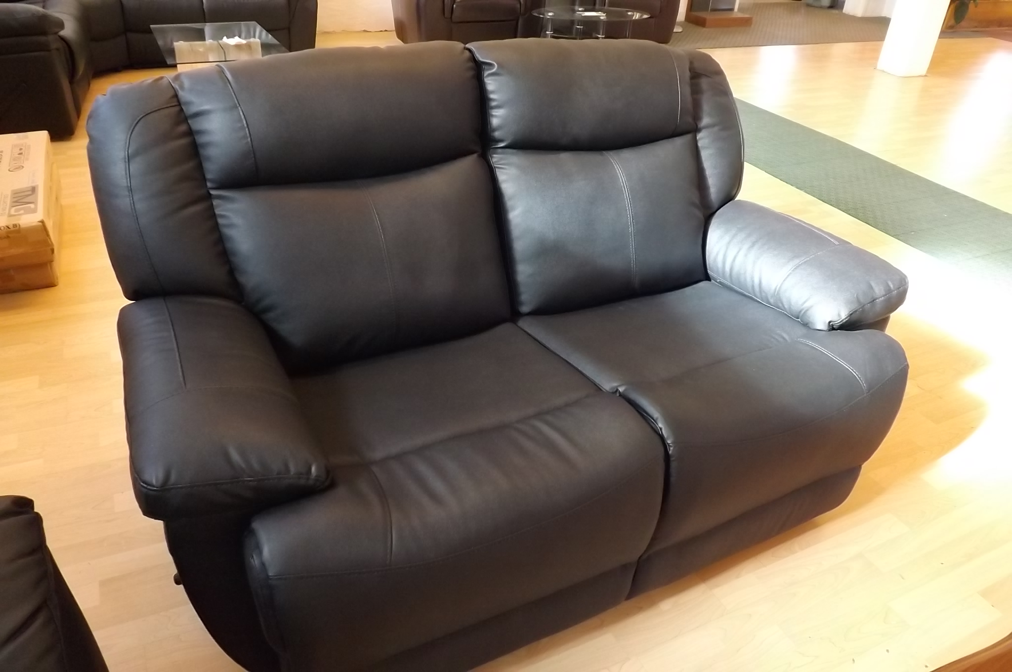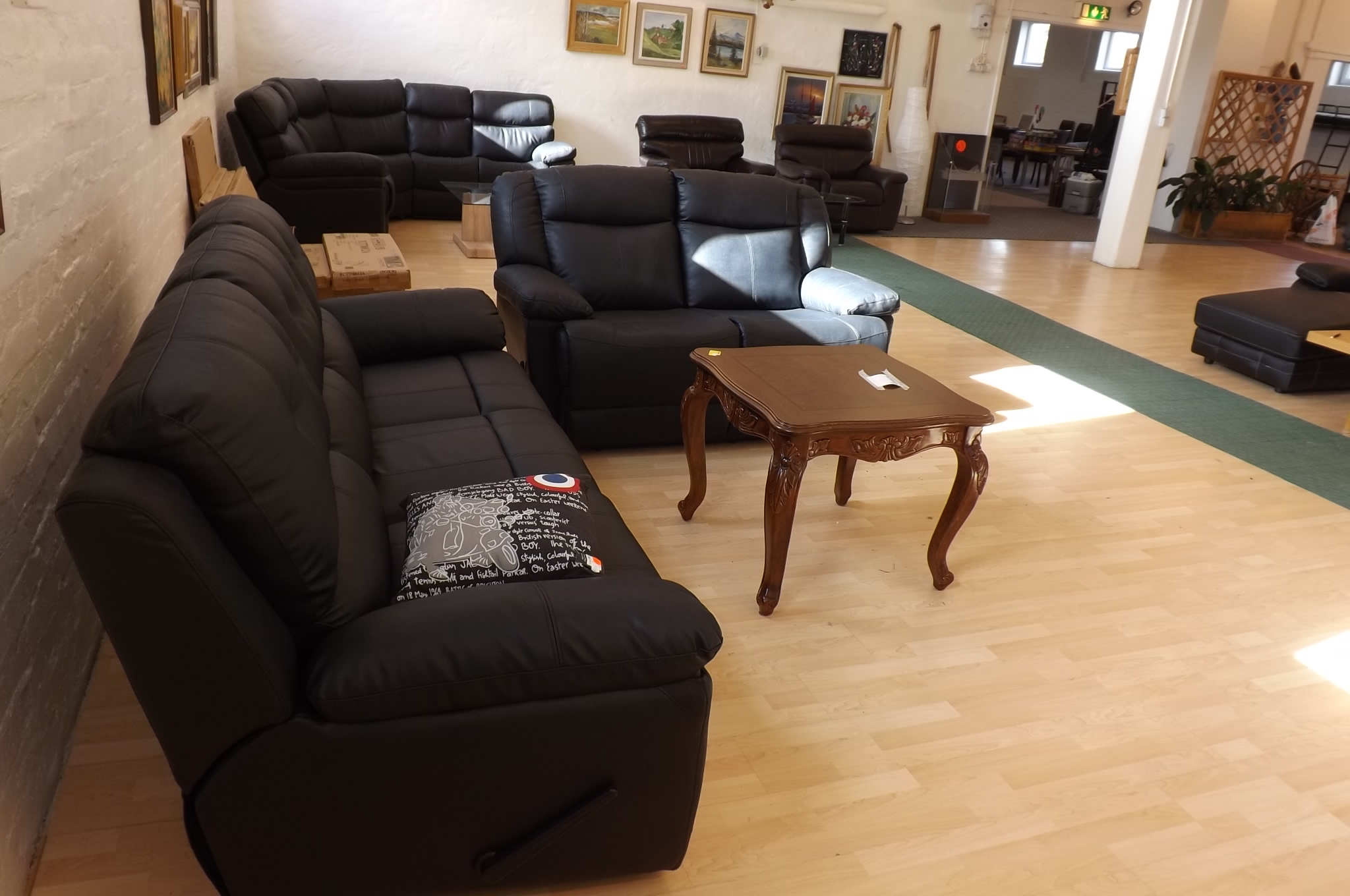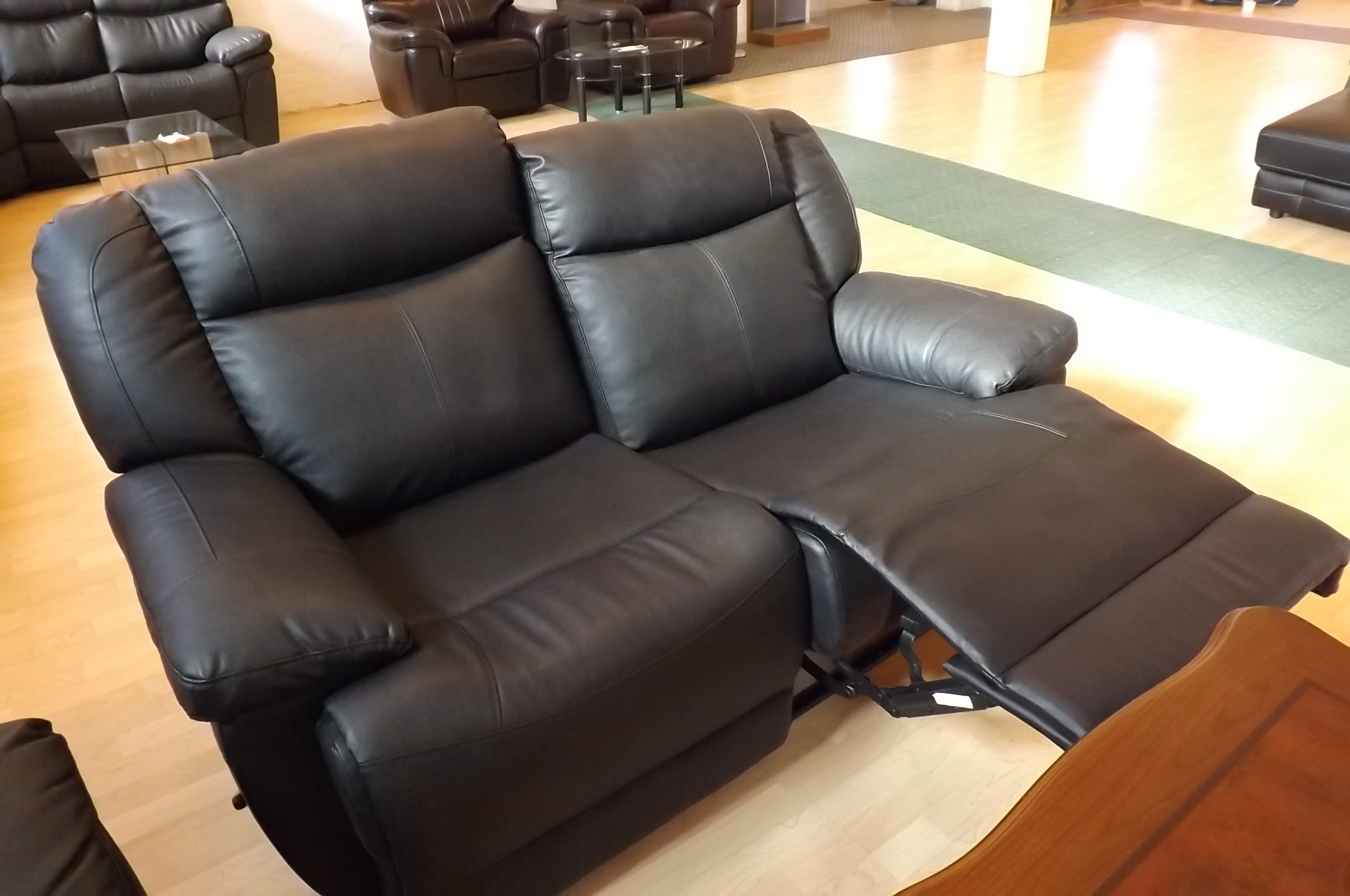 Soffgrupp i läder med utfällbart fotstöd + bord