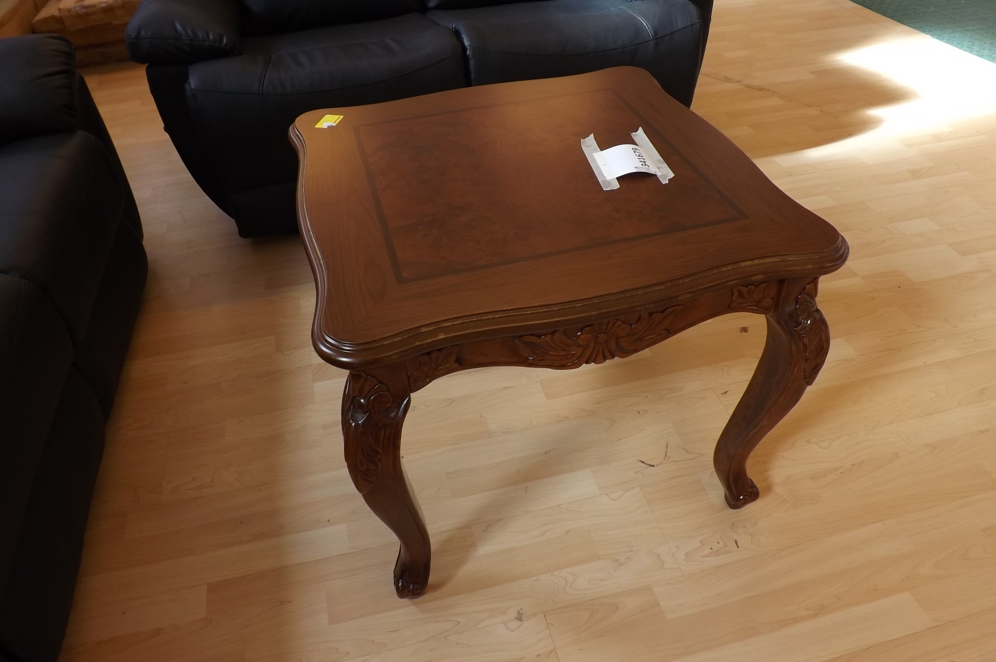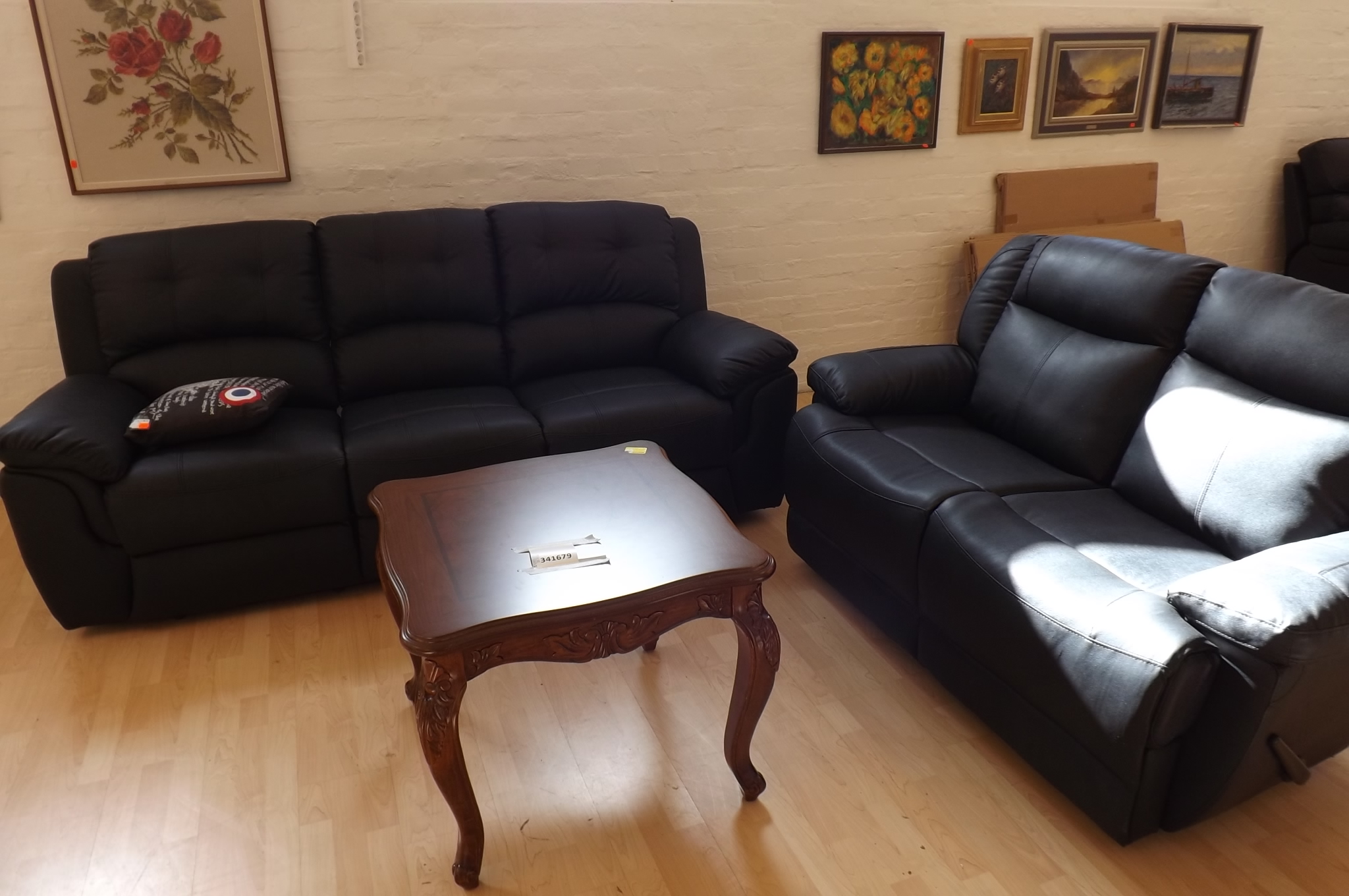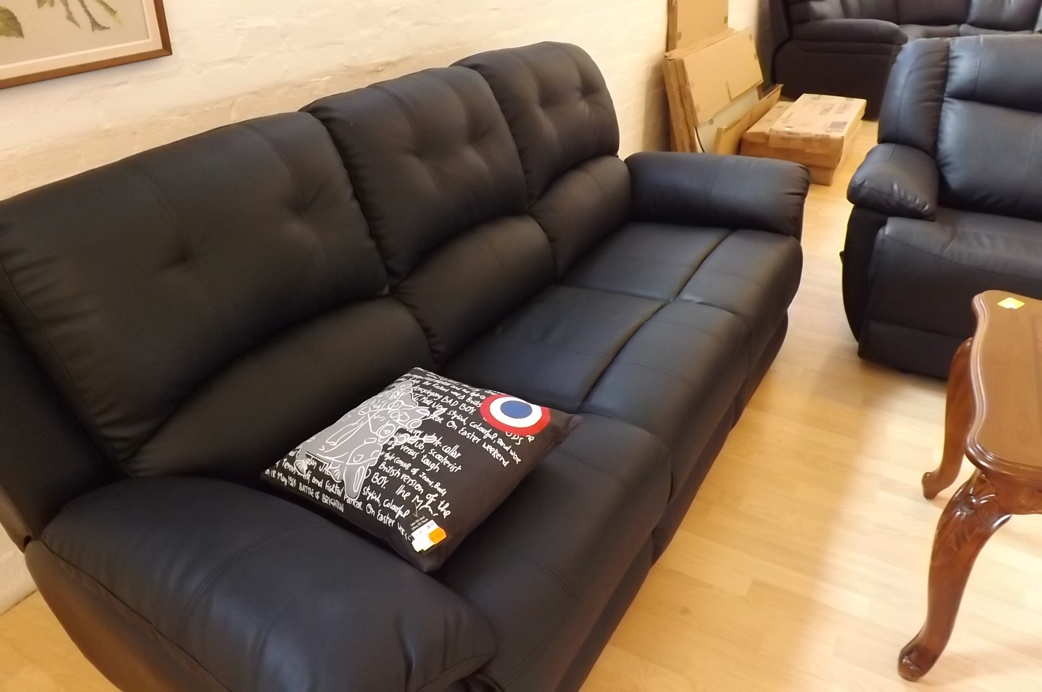 Soffgrupp i läder med utfällbart fotstöd + bord