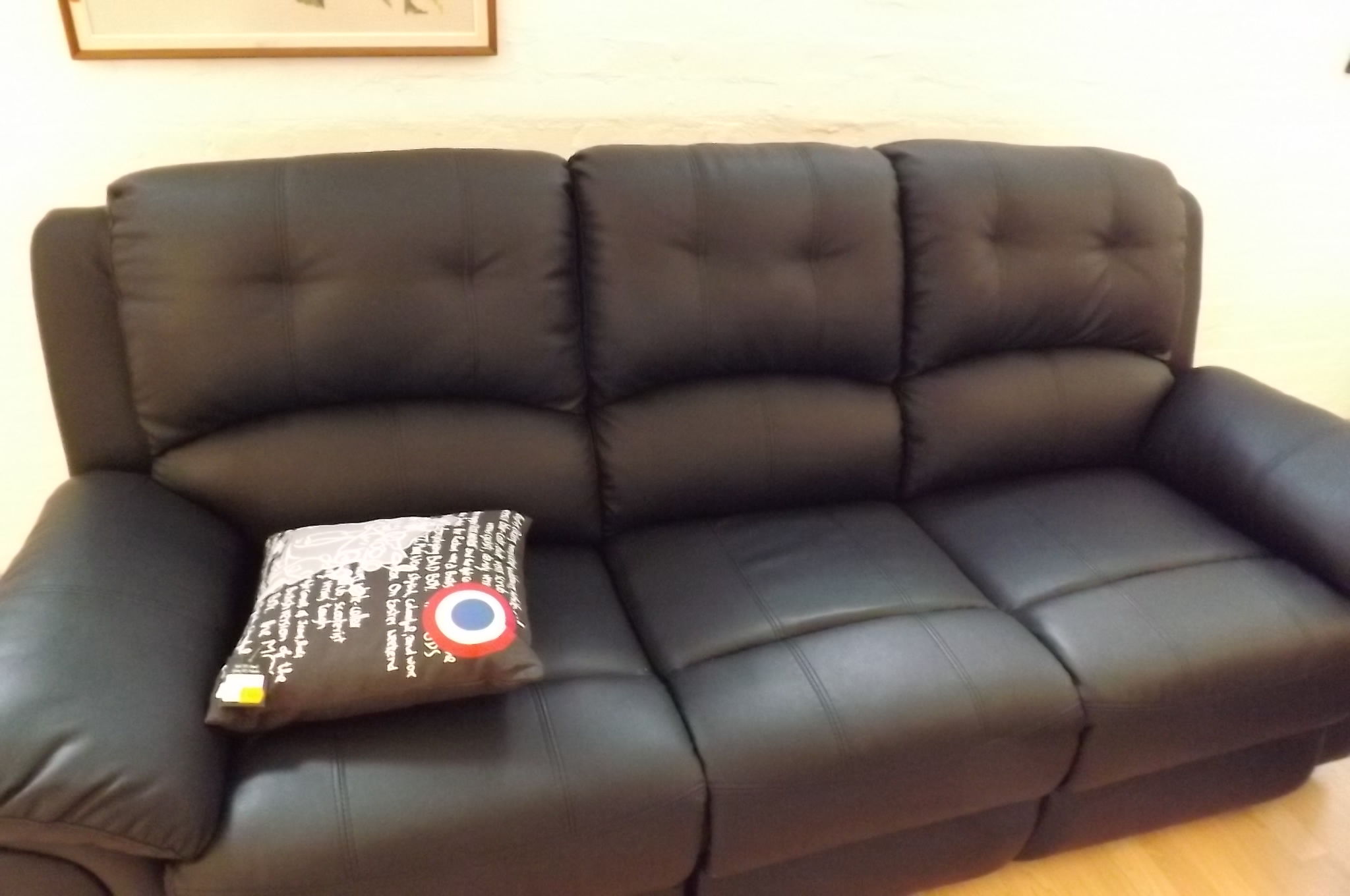 - Soffgrupp i läder med utfällbart fotstöd