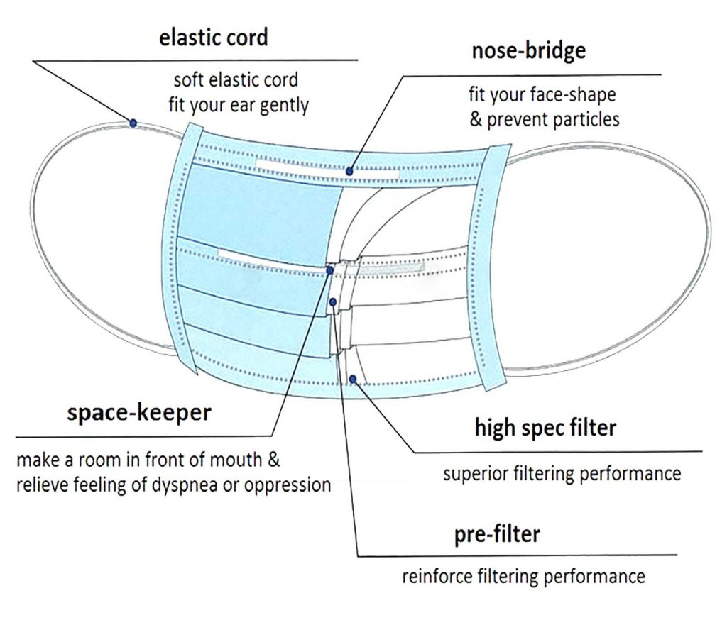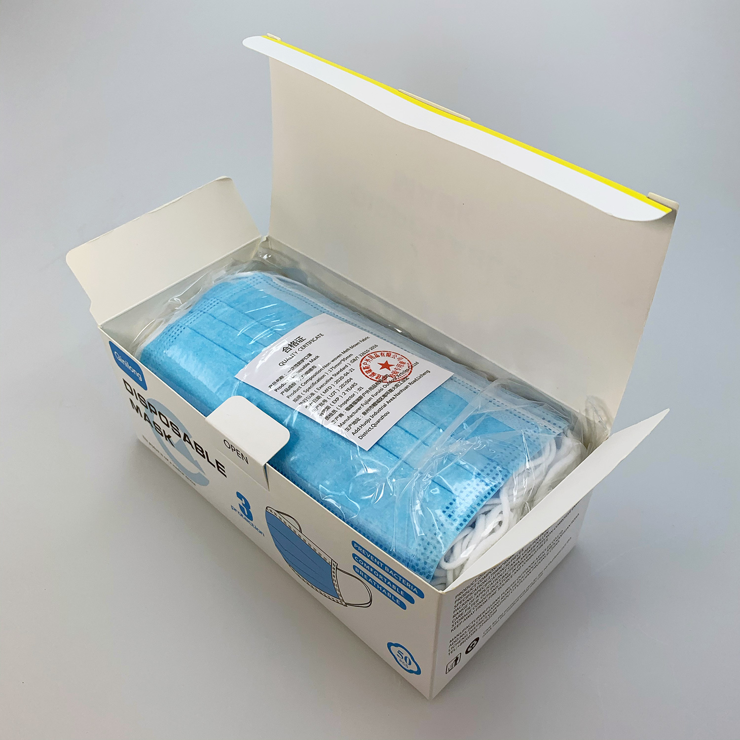 50 stycken 3-lagers munskydd i hög kvalitet med elastiska öronöglor. Hudvänligt tyg och justerbar näsklämma för god passform. Bakteriell filtreringseffektivitet över 95%. Ej avsedd för medicinskt bruk.