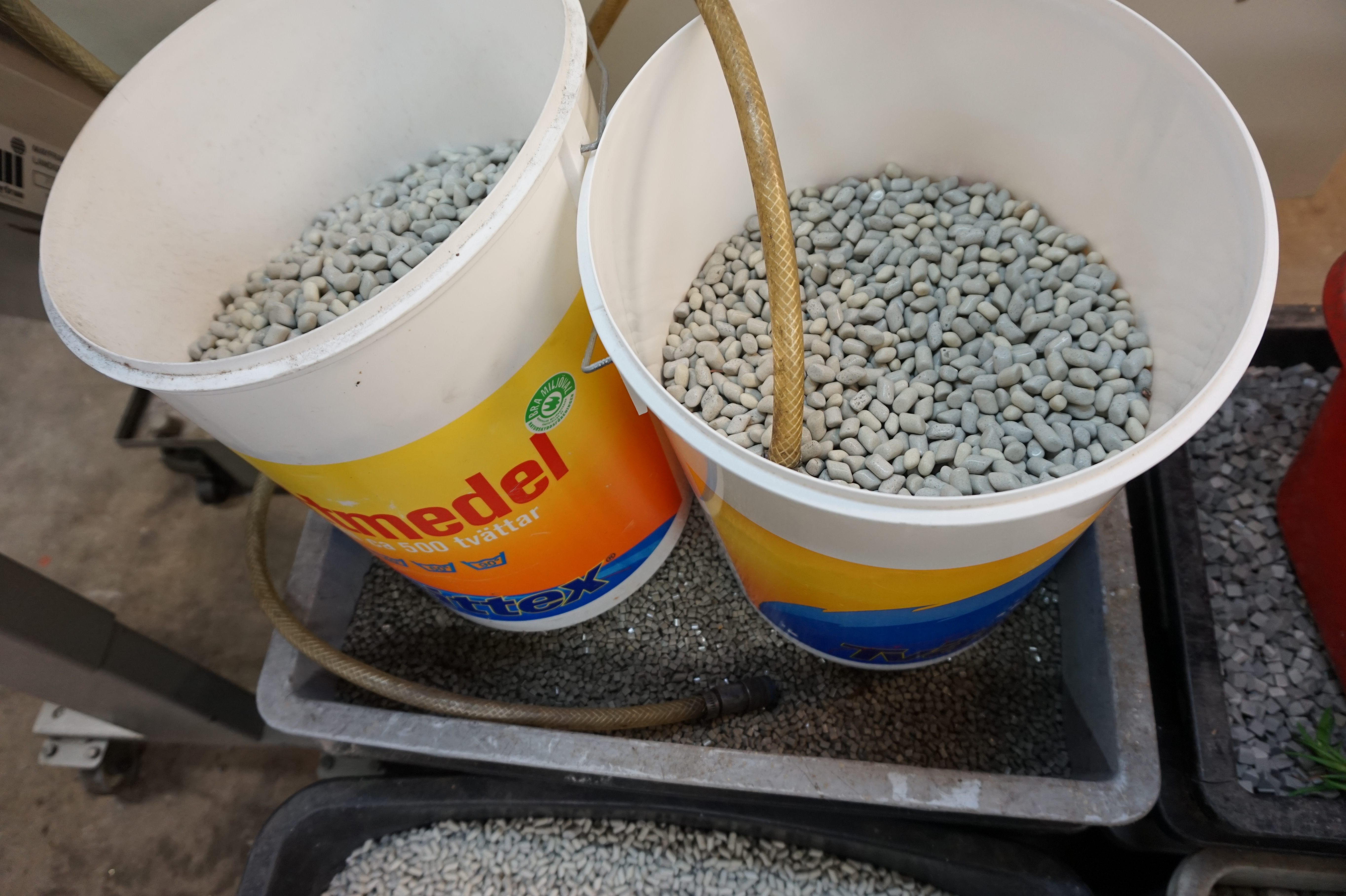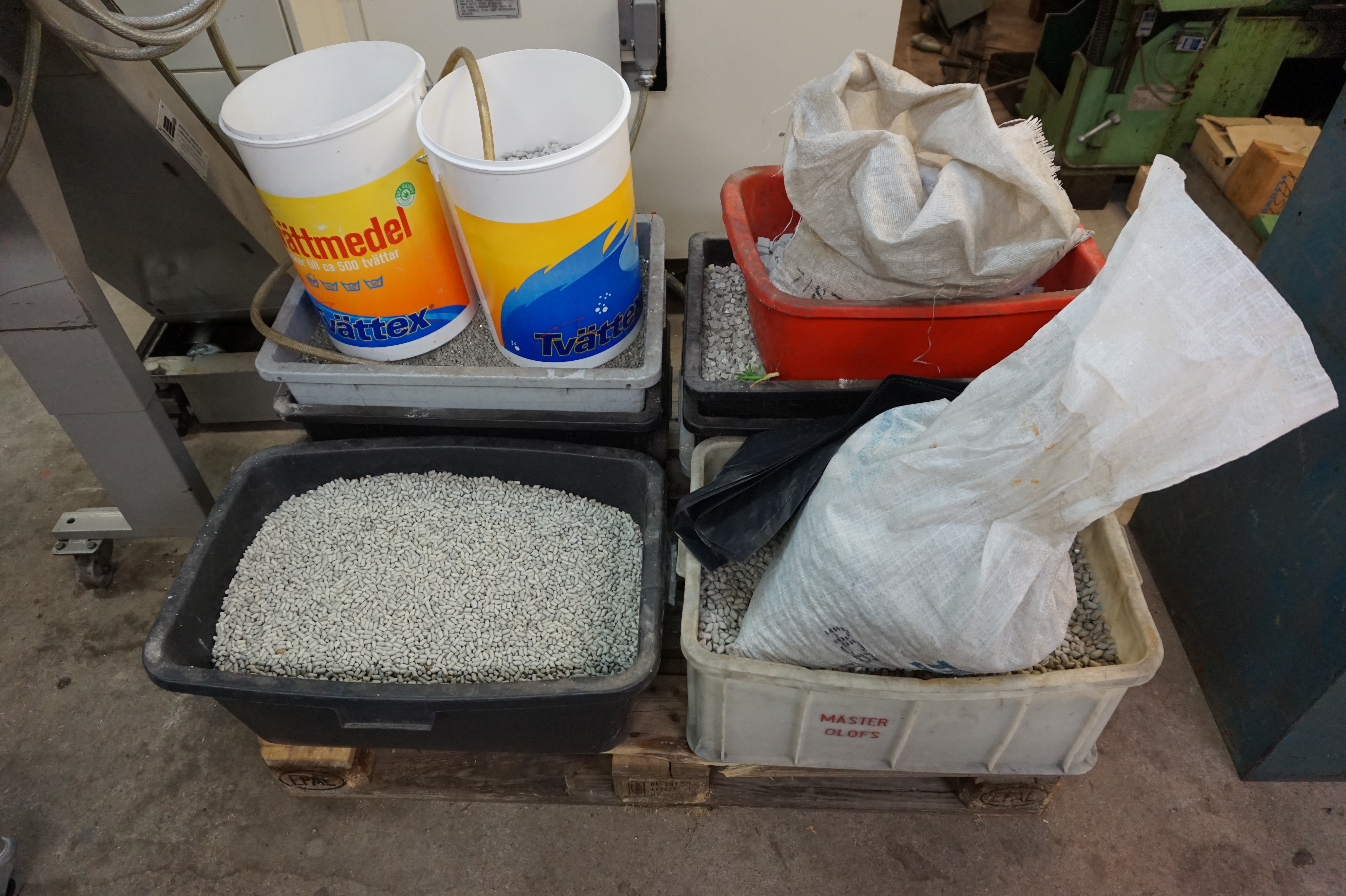 Inklusive pall med trumlingschips & nya lager medföljer