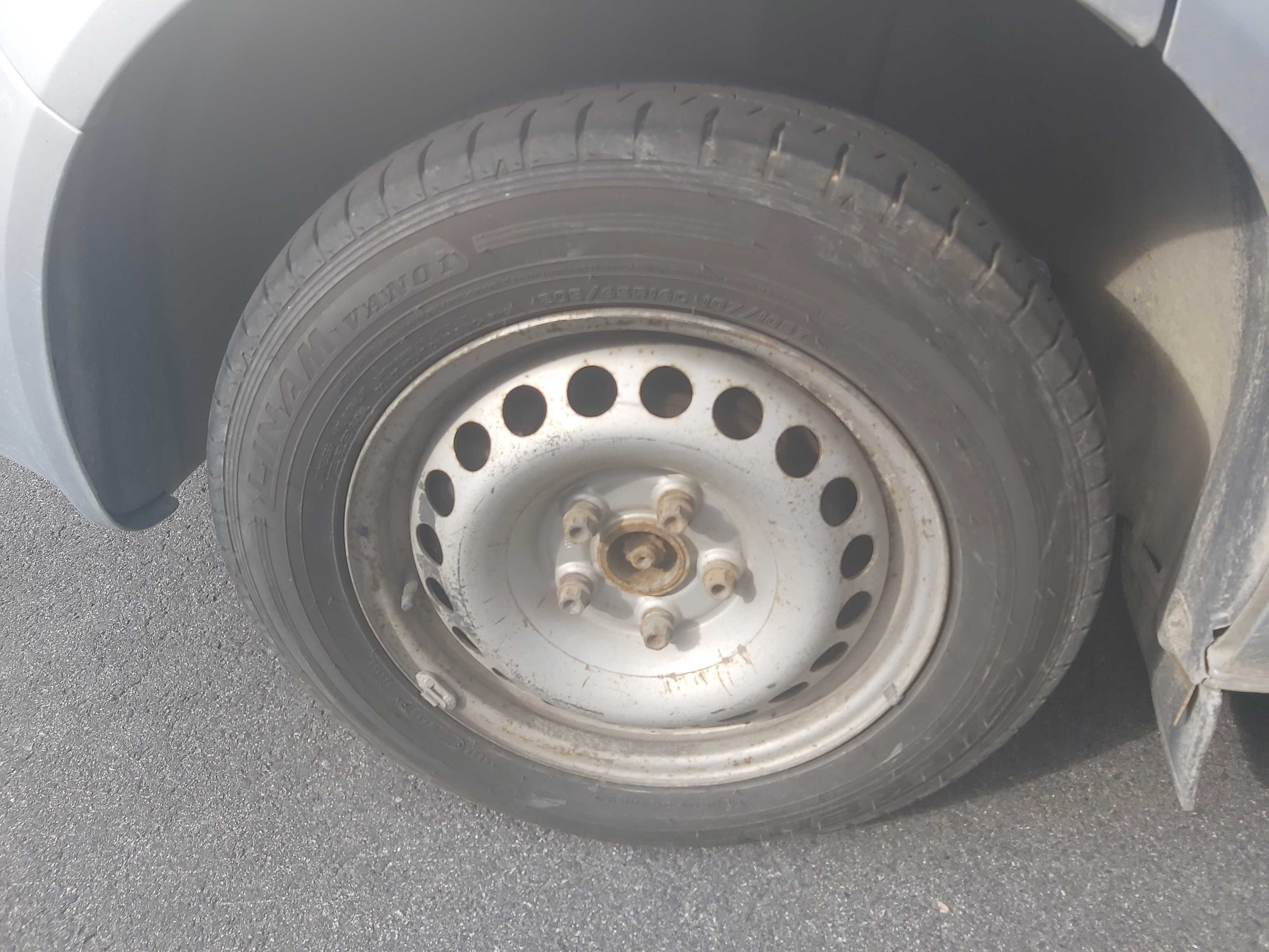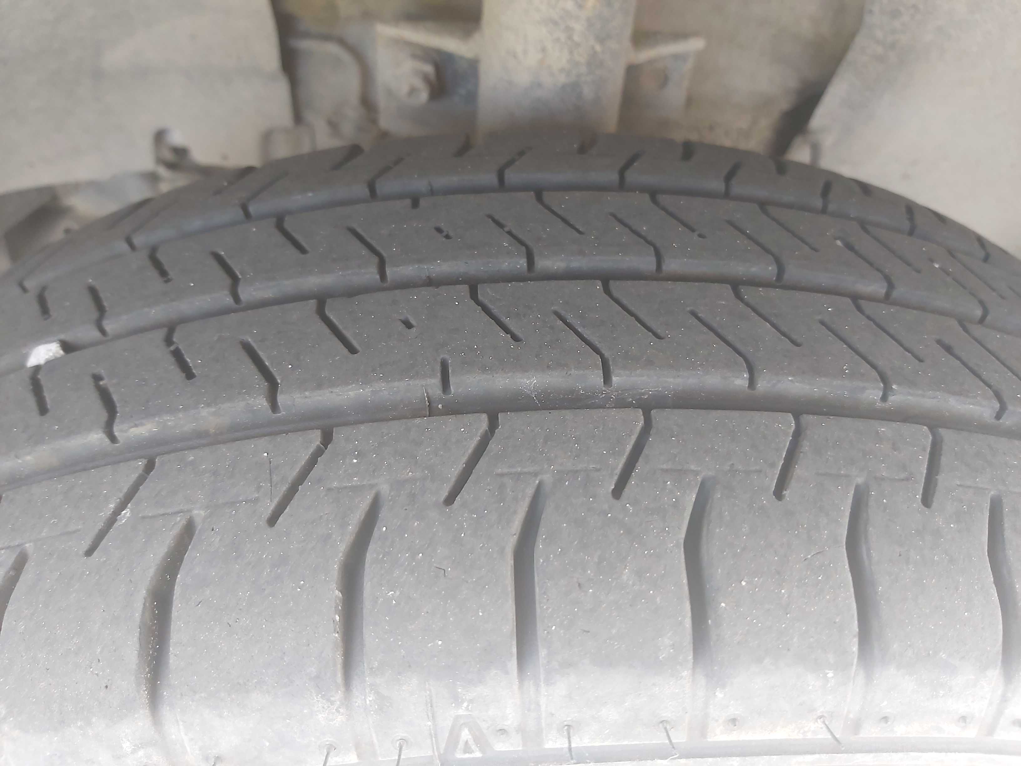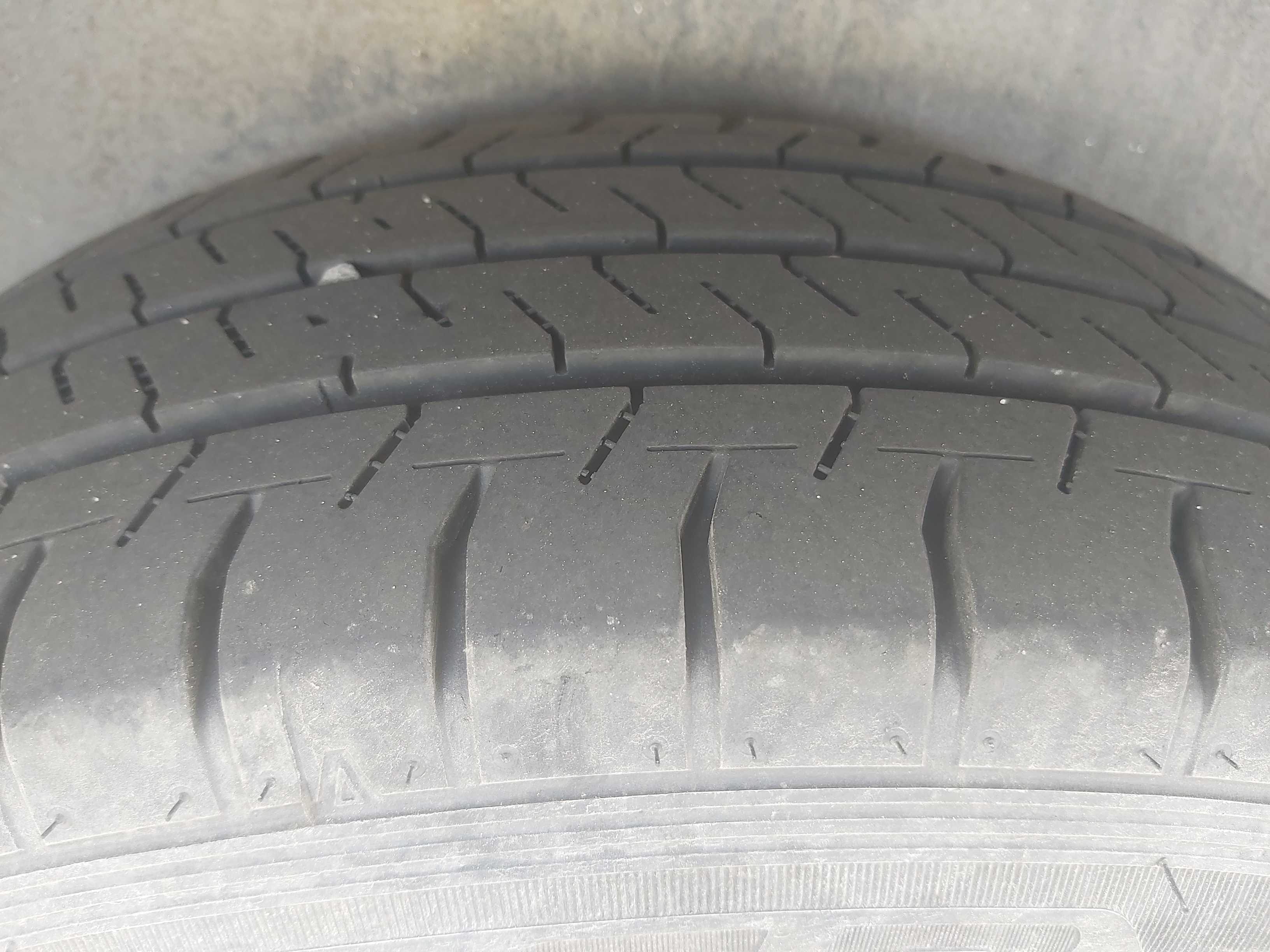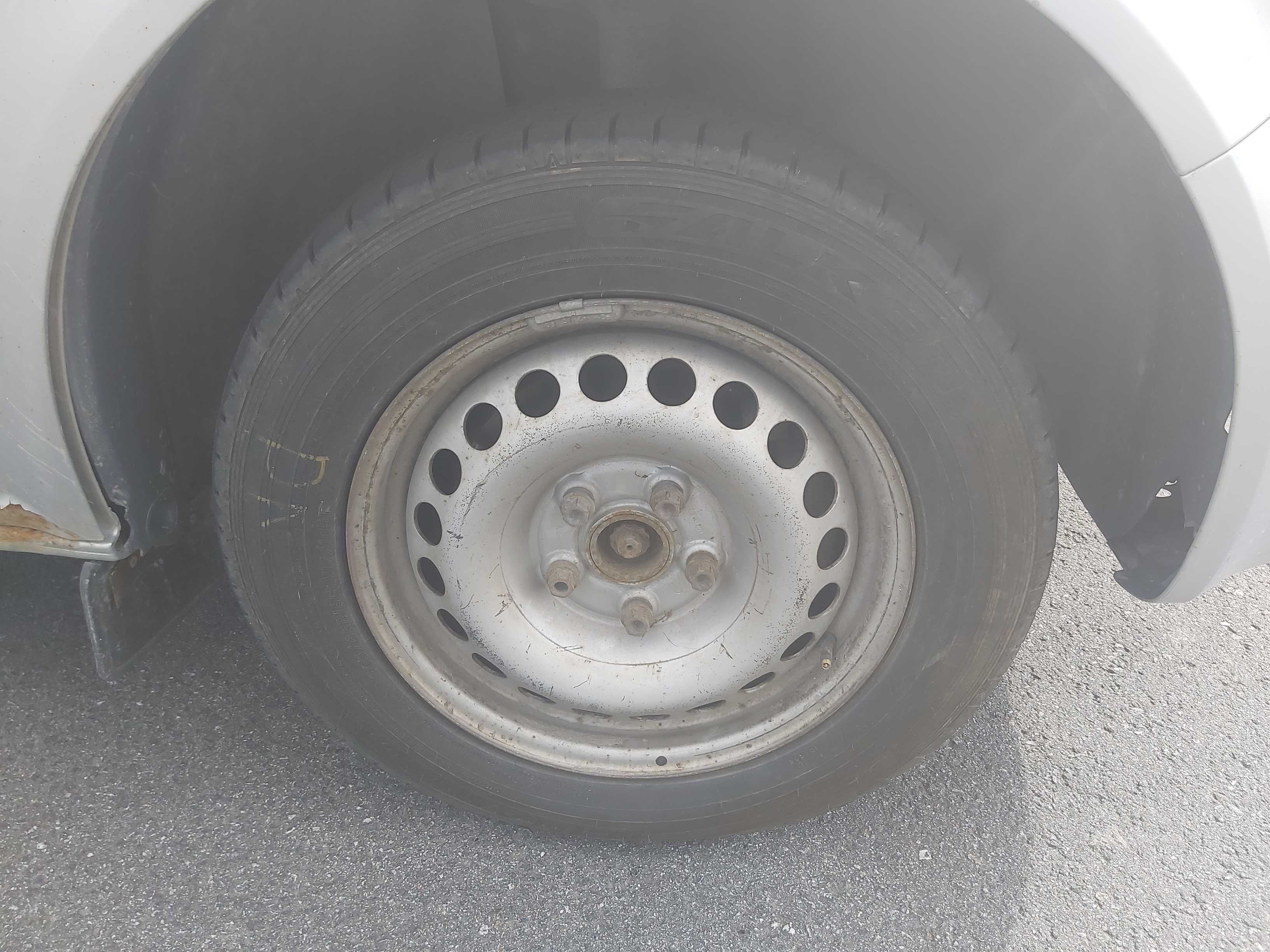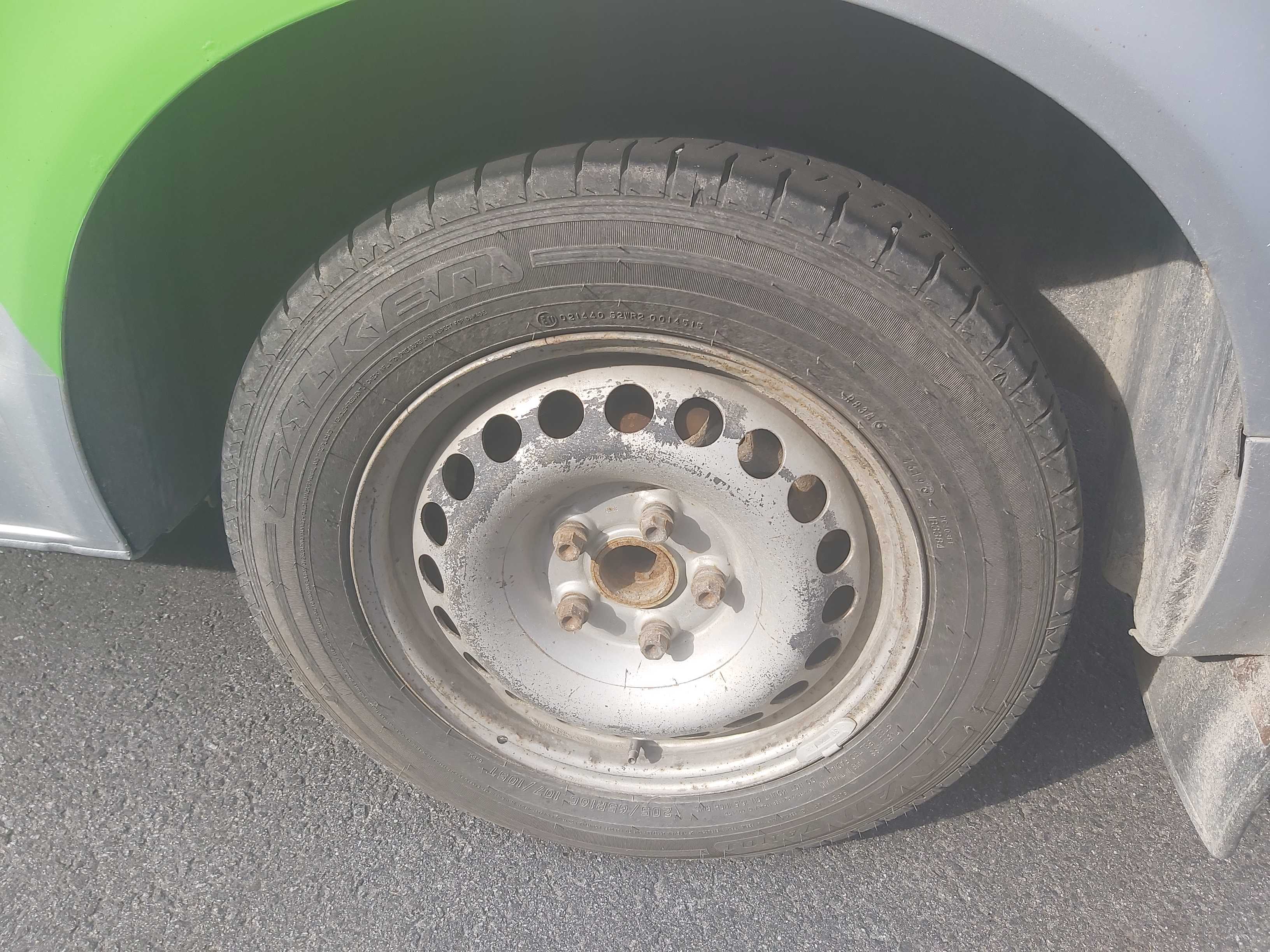 Sommardäck på plåtfälg, ca 60% mönsterdjup kvar, inga vinterdäck medföljer.
