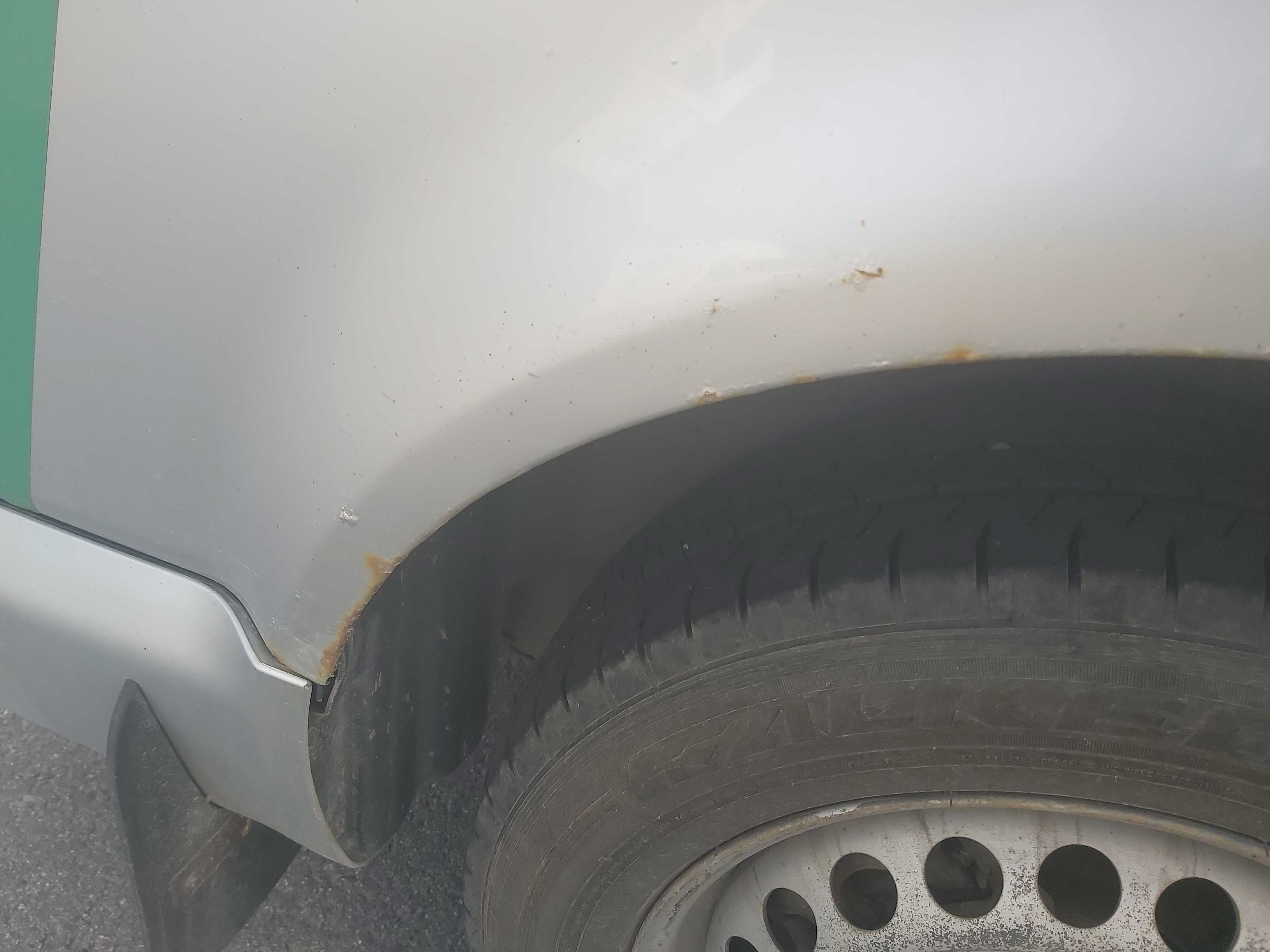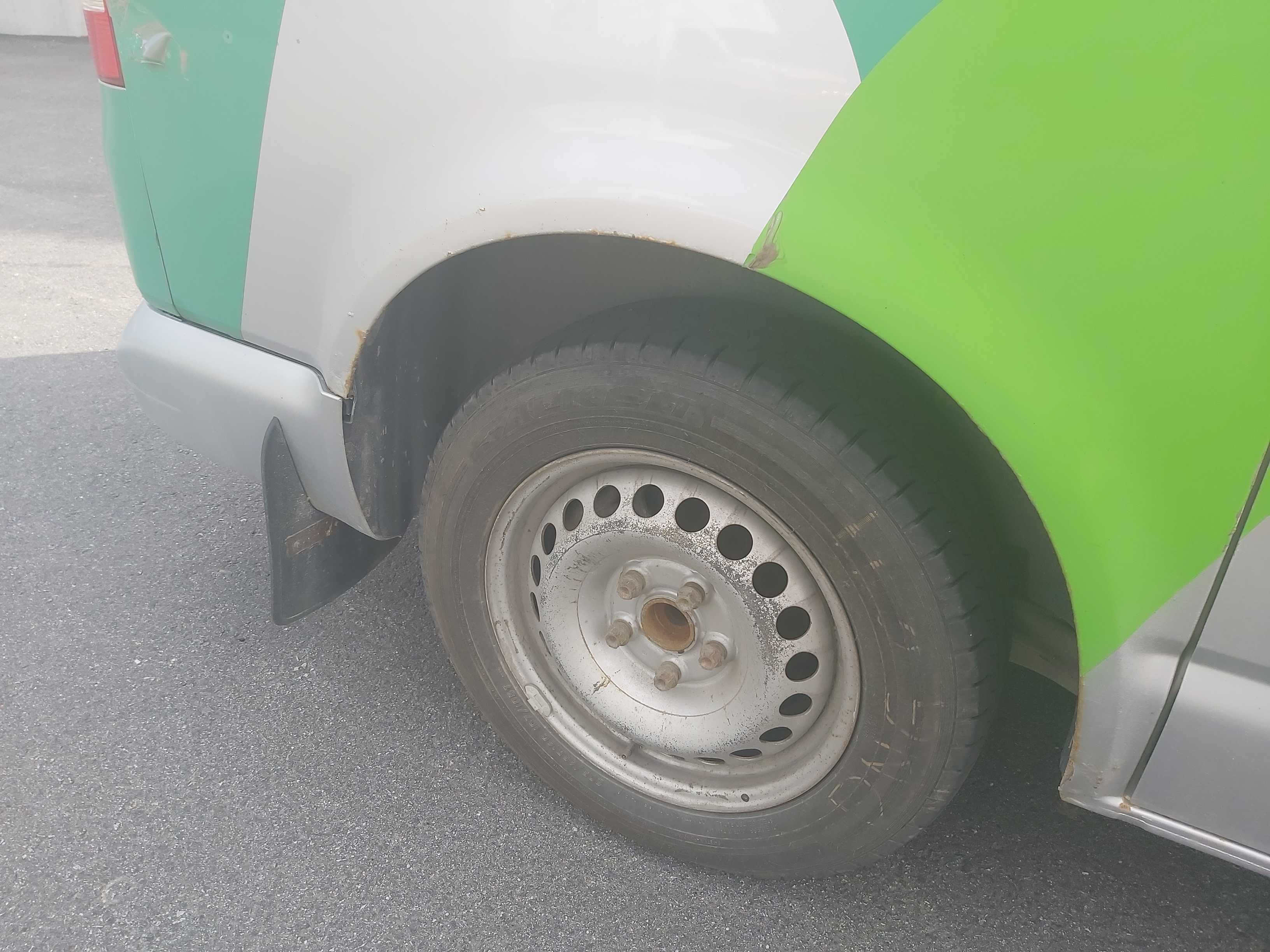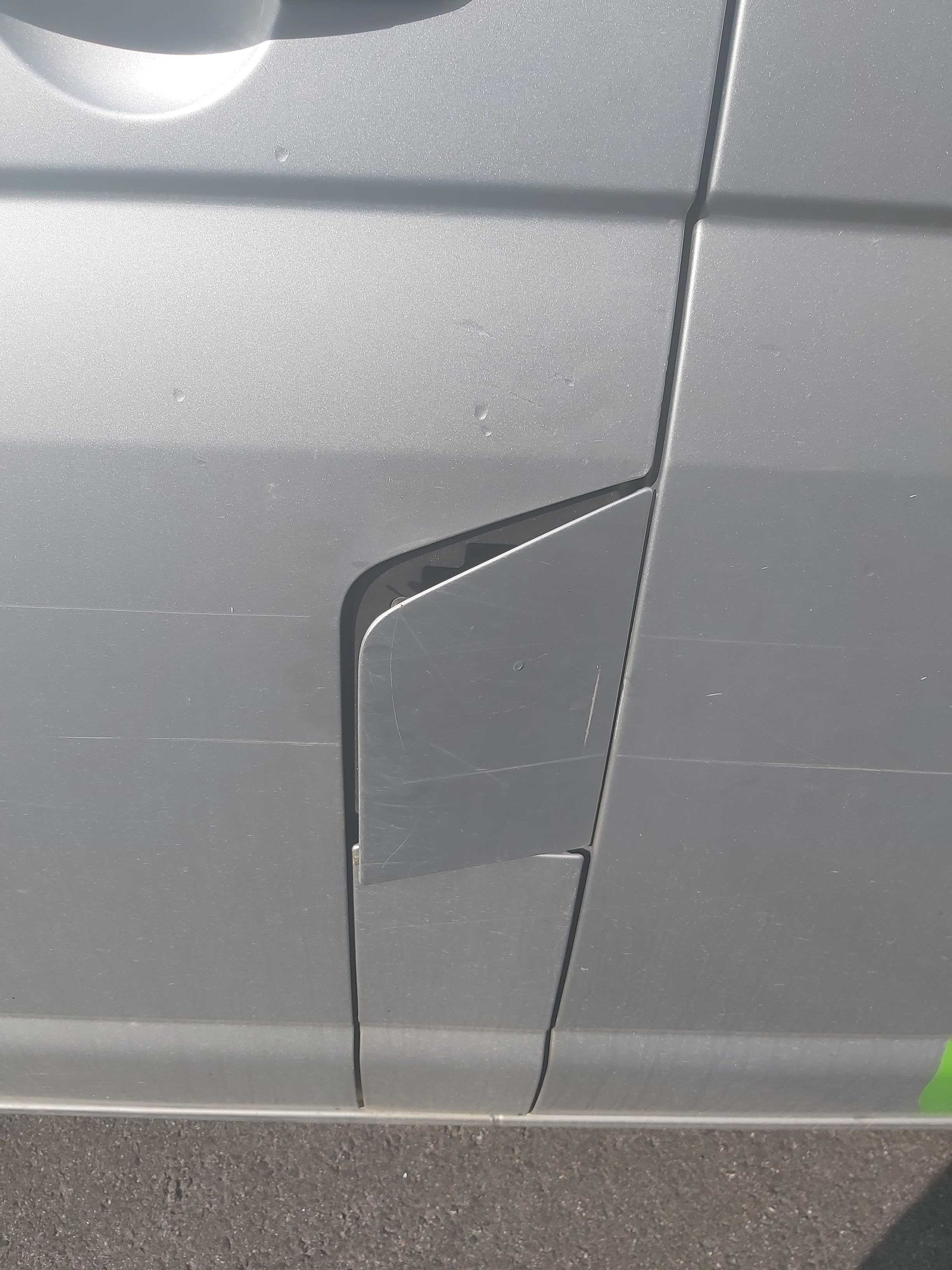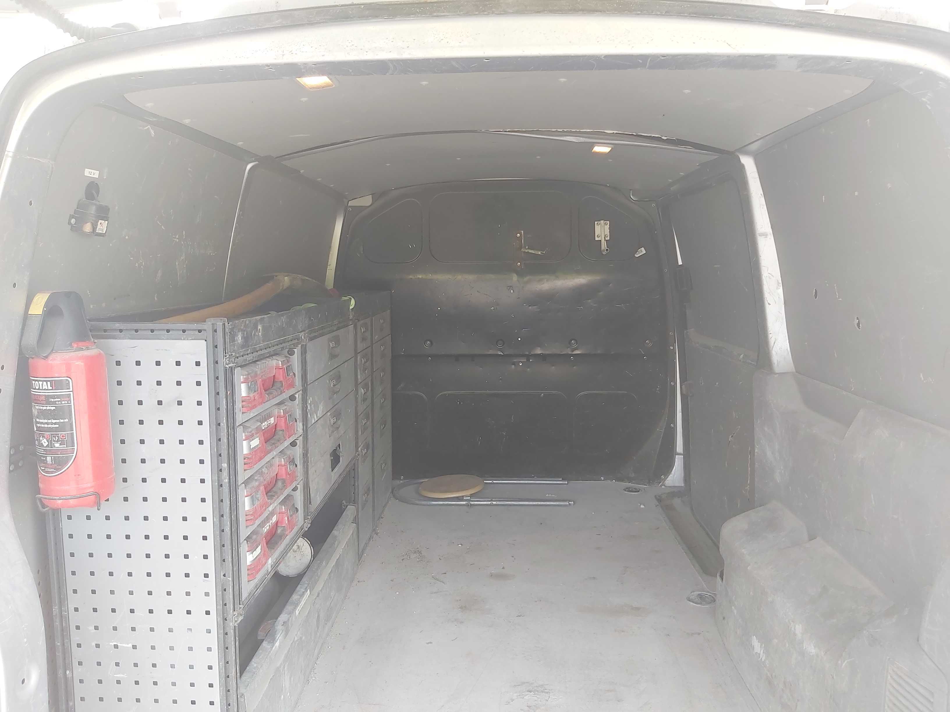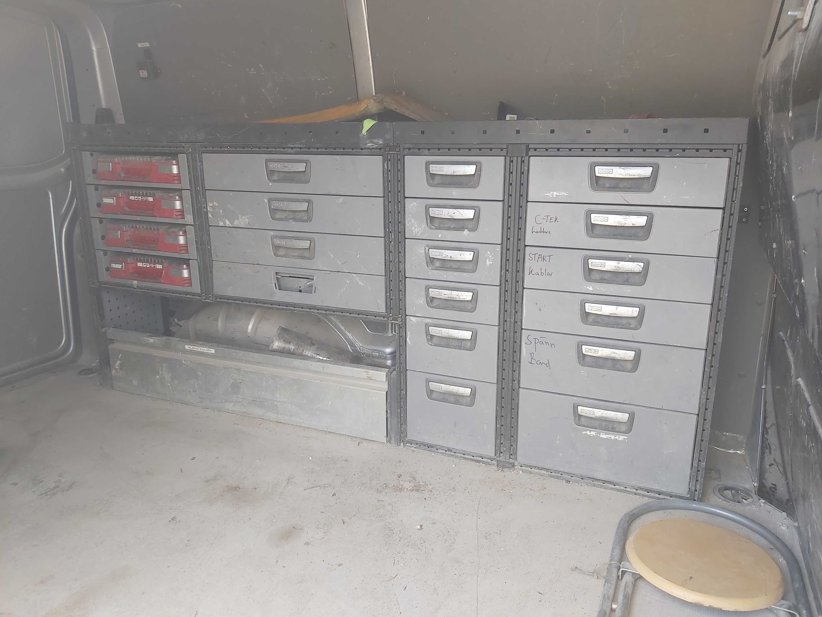 Fordonet har använts i rivningsbranchen så finns en del skrap och skav utvändigt, samt slitet skåp invändigt med en del bucklor inifrån, huvudsakligen på bakluckan. I kupén är den ganska smutsig och skulle behöva en rekond.