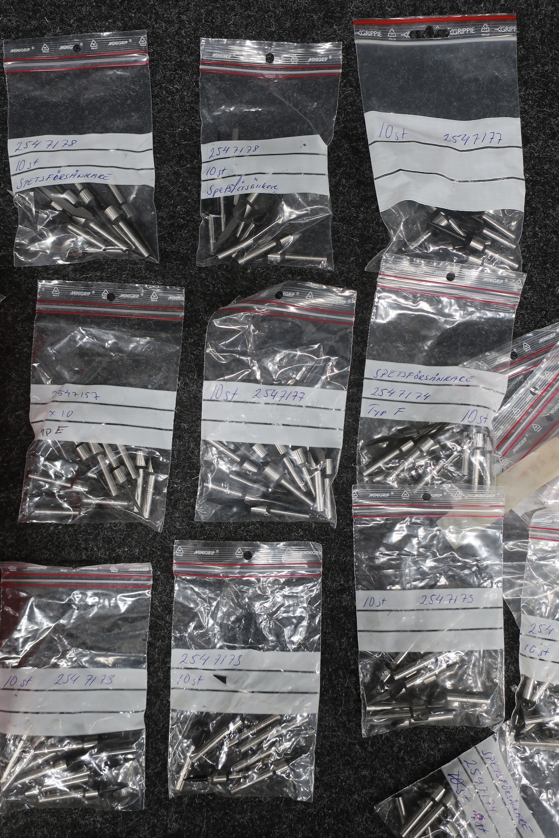Mängd med spetsförsänkare i olika dimensioner