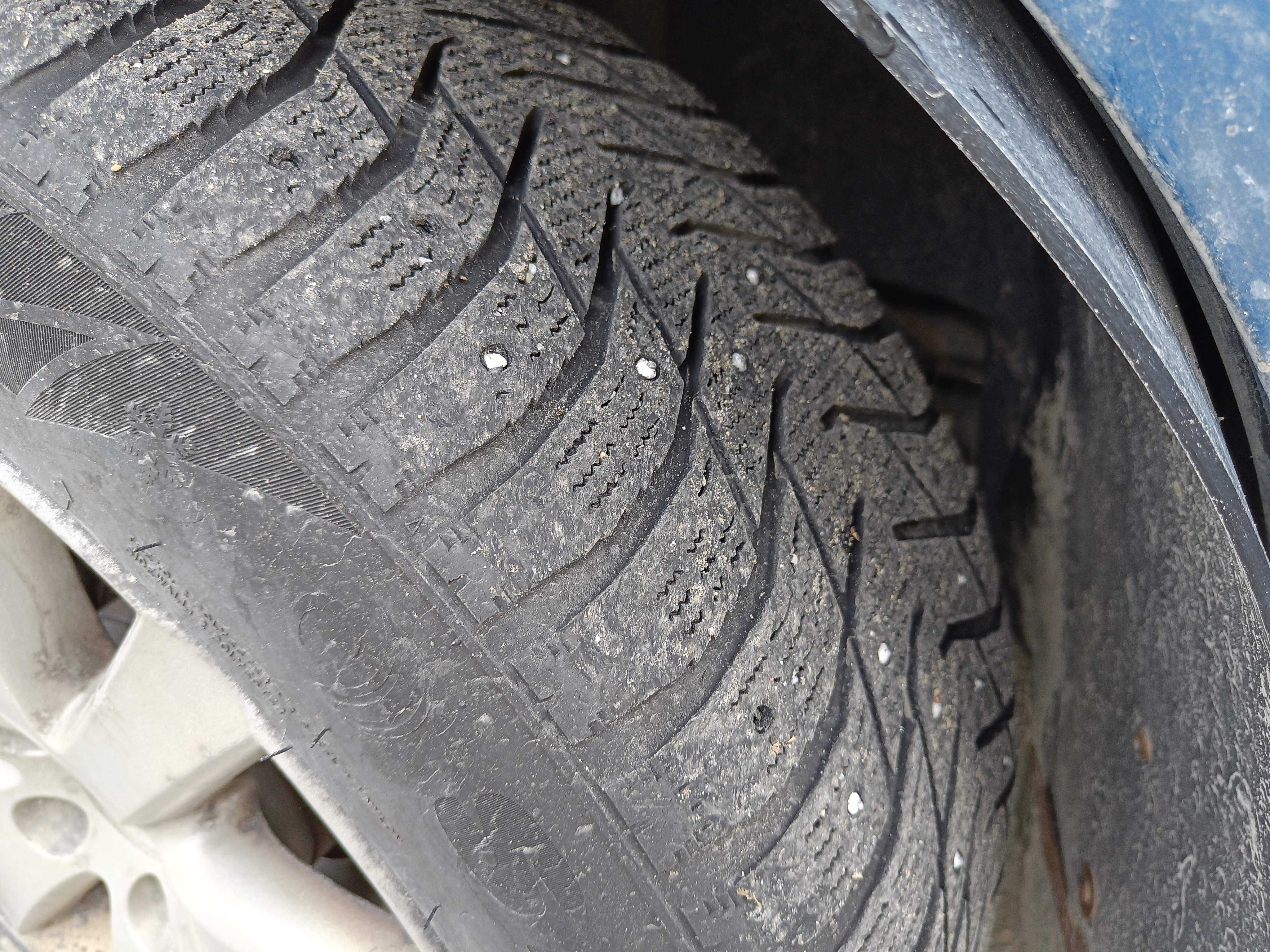 Står idag på Alufälgar med dubbade vinterdäck (saknas en del dubb.)
