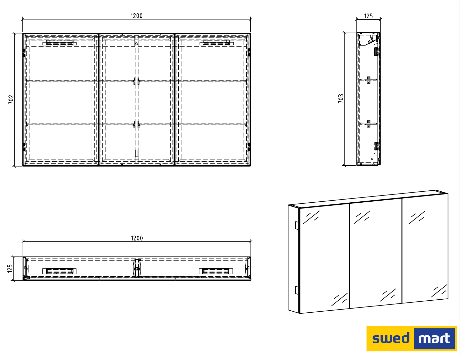 Sibylla 120 cm Spegelskåp - SW1423