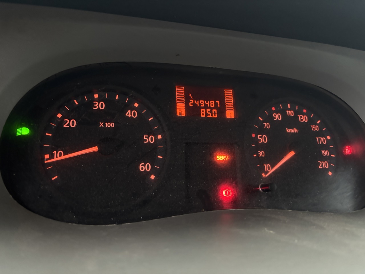 Service- & bromslampa lyser