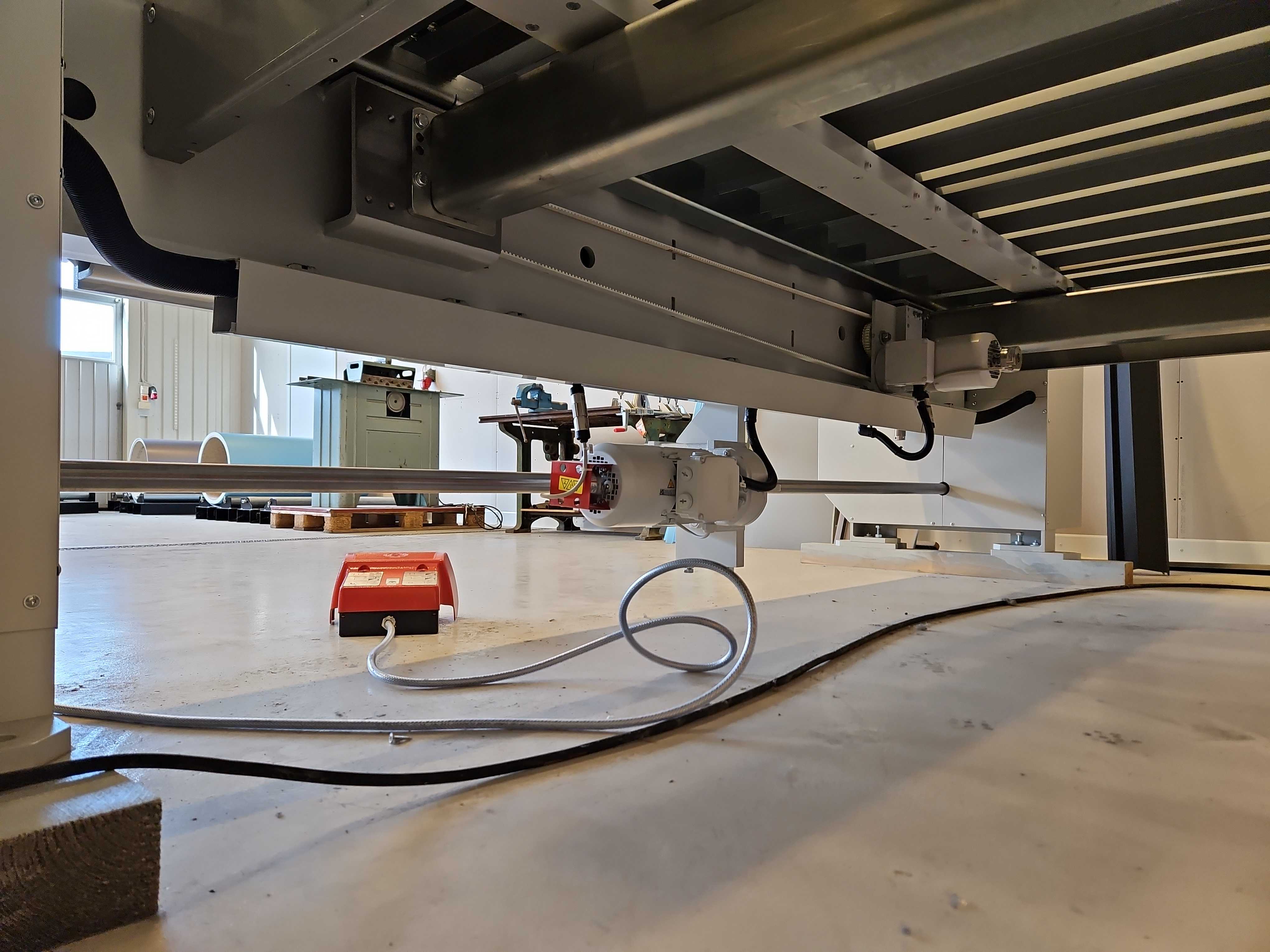 Motordrivet bakre anslag med kulskruv och frekvensstyrning