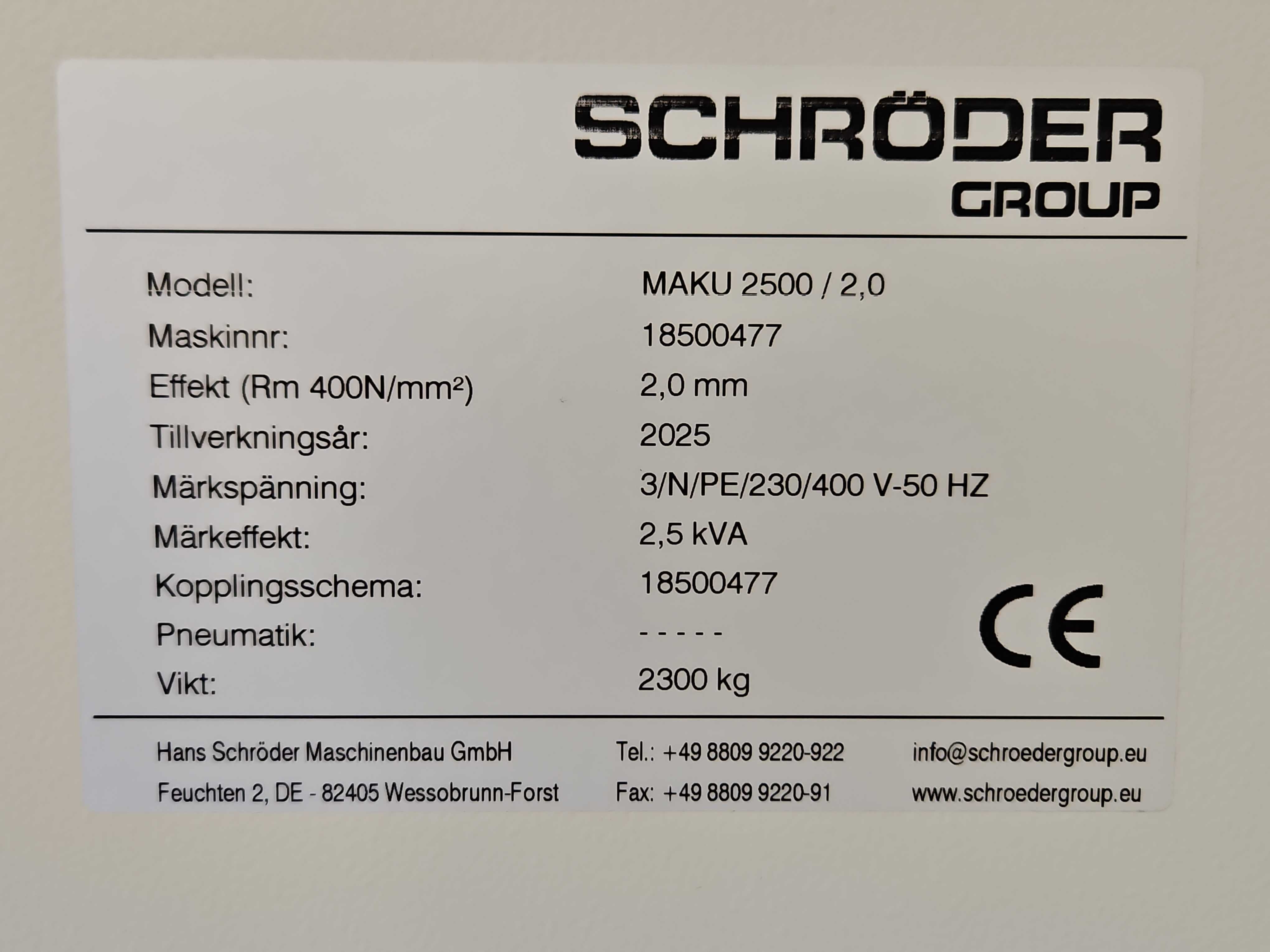 Bockmaskin med CNC-styrsystem - SCHRÖDER MAKU 2500/2,0 -2025