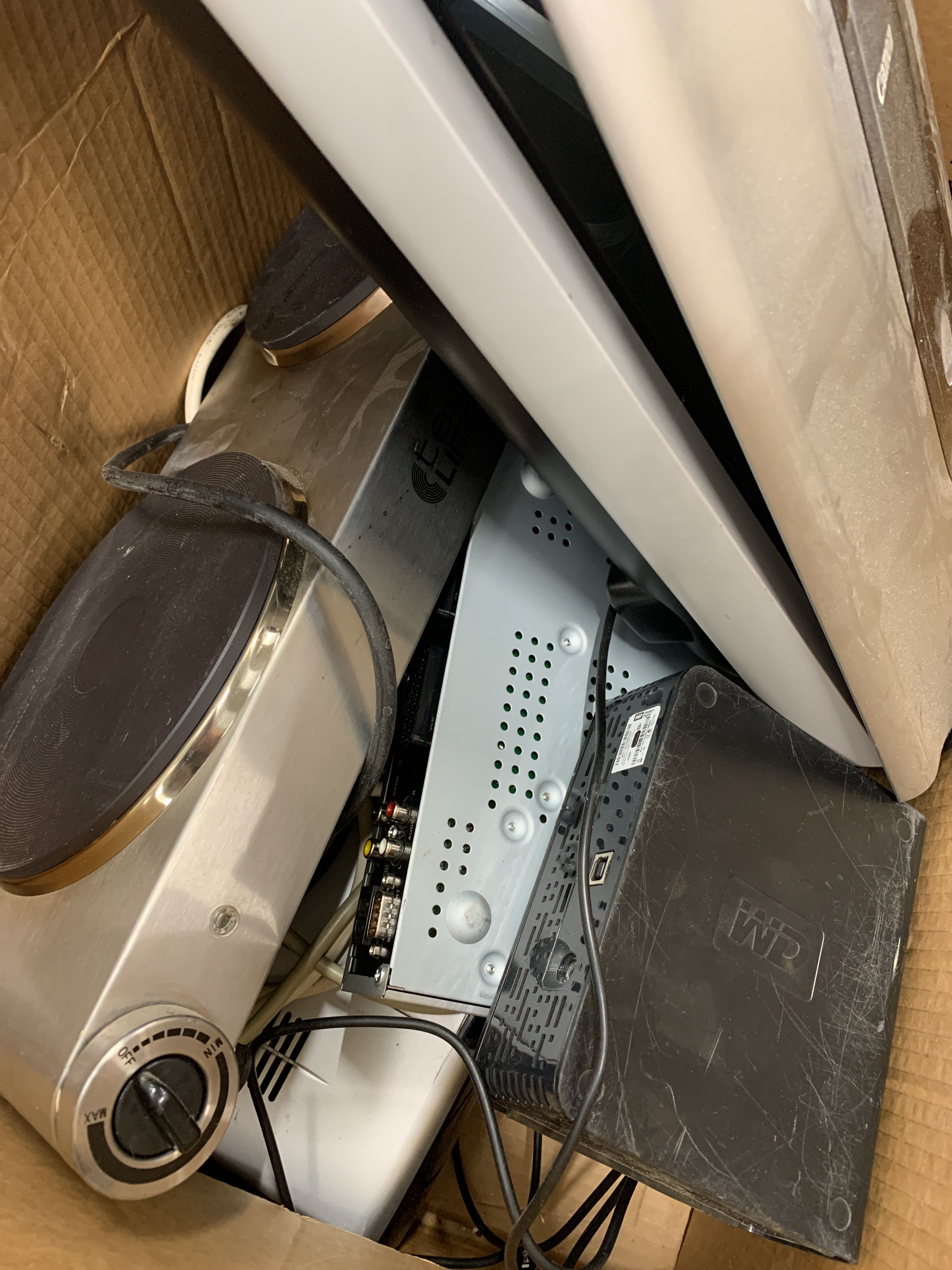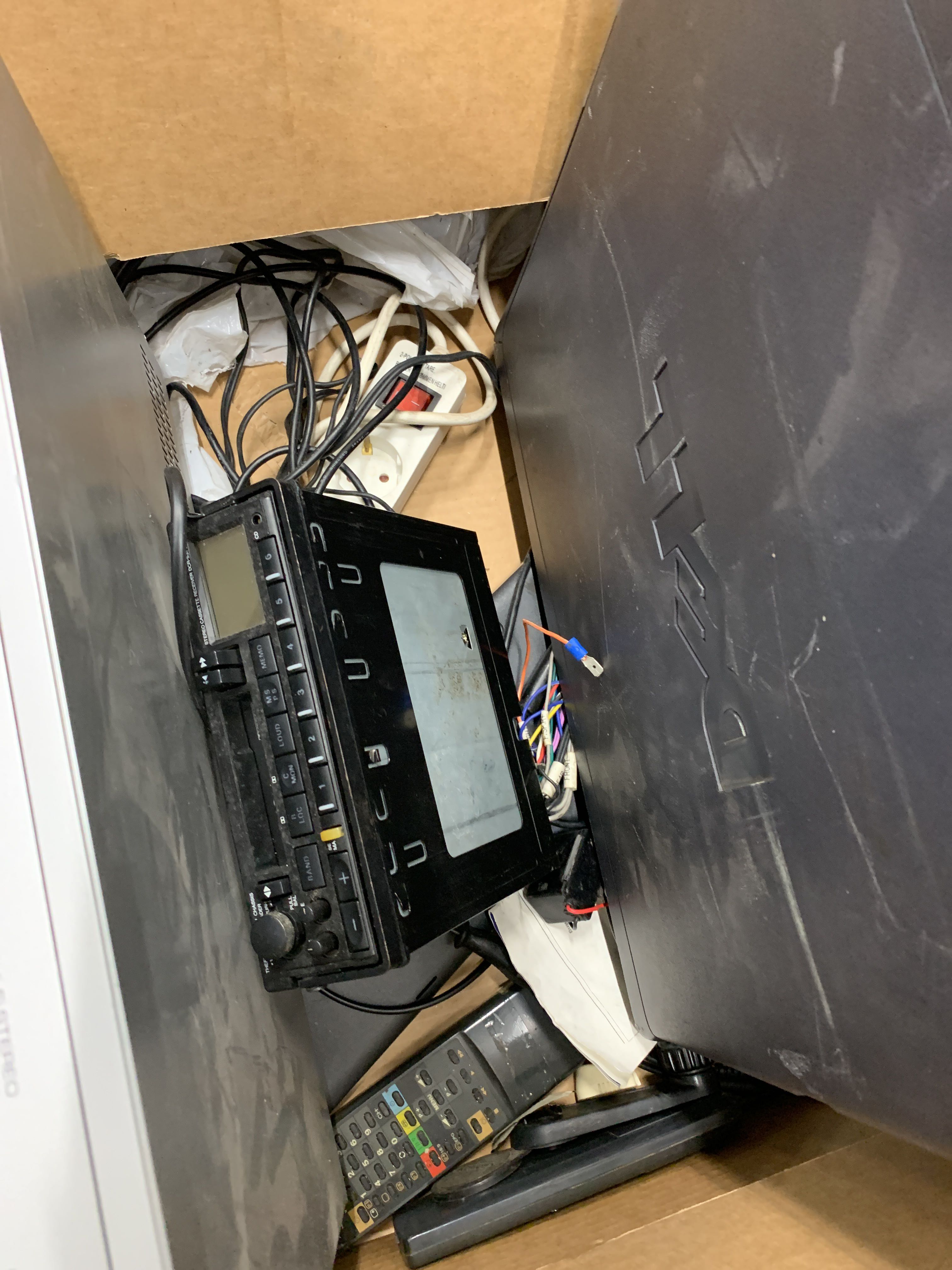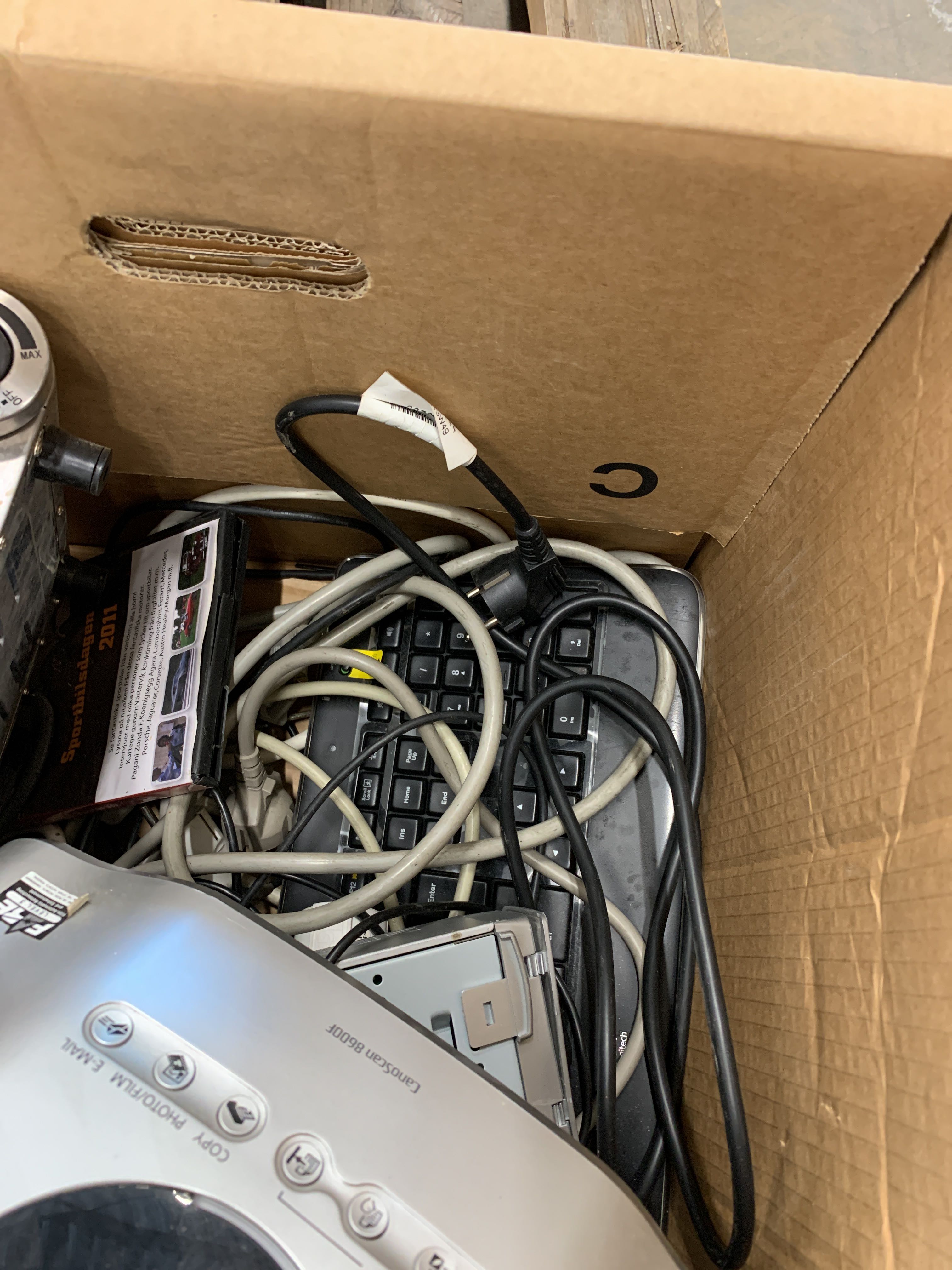 Innehåller bla skrivare, högtalare, dvd-spelare, datorer etc.