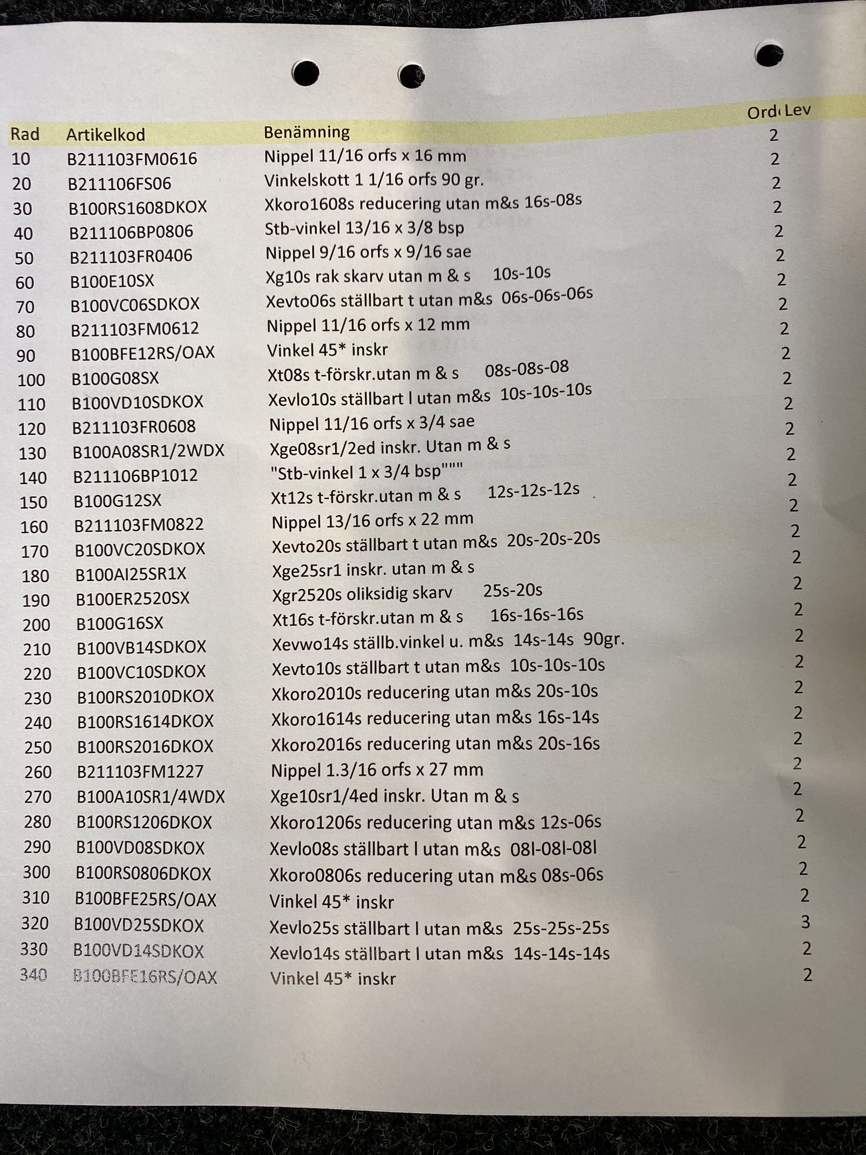 Se bilder för inventarielista.